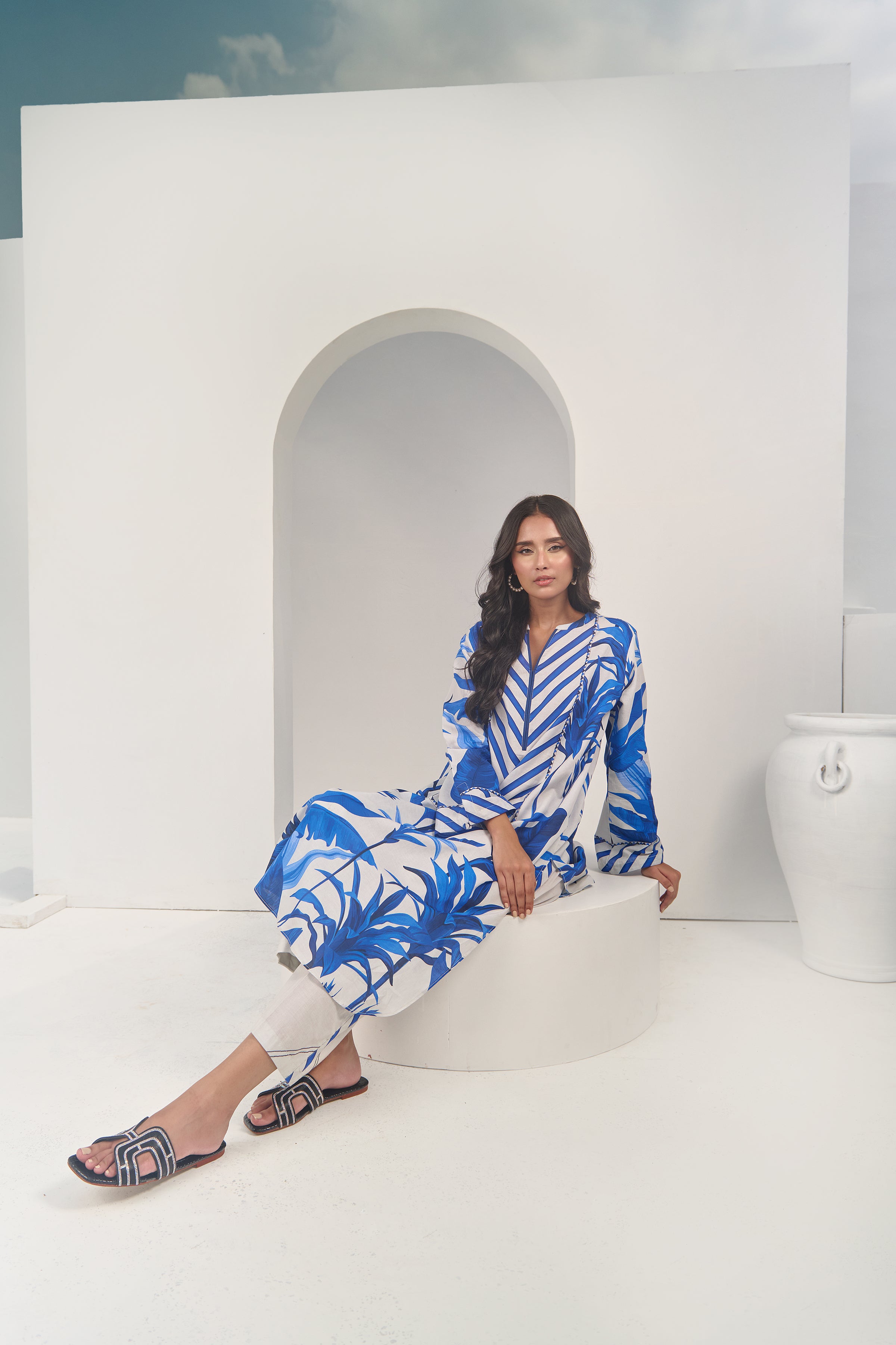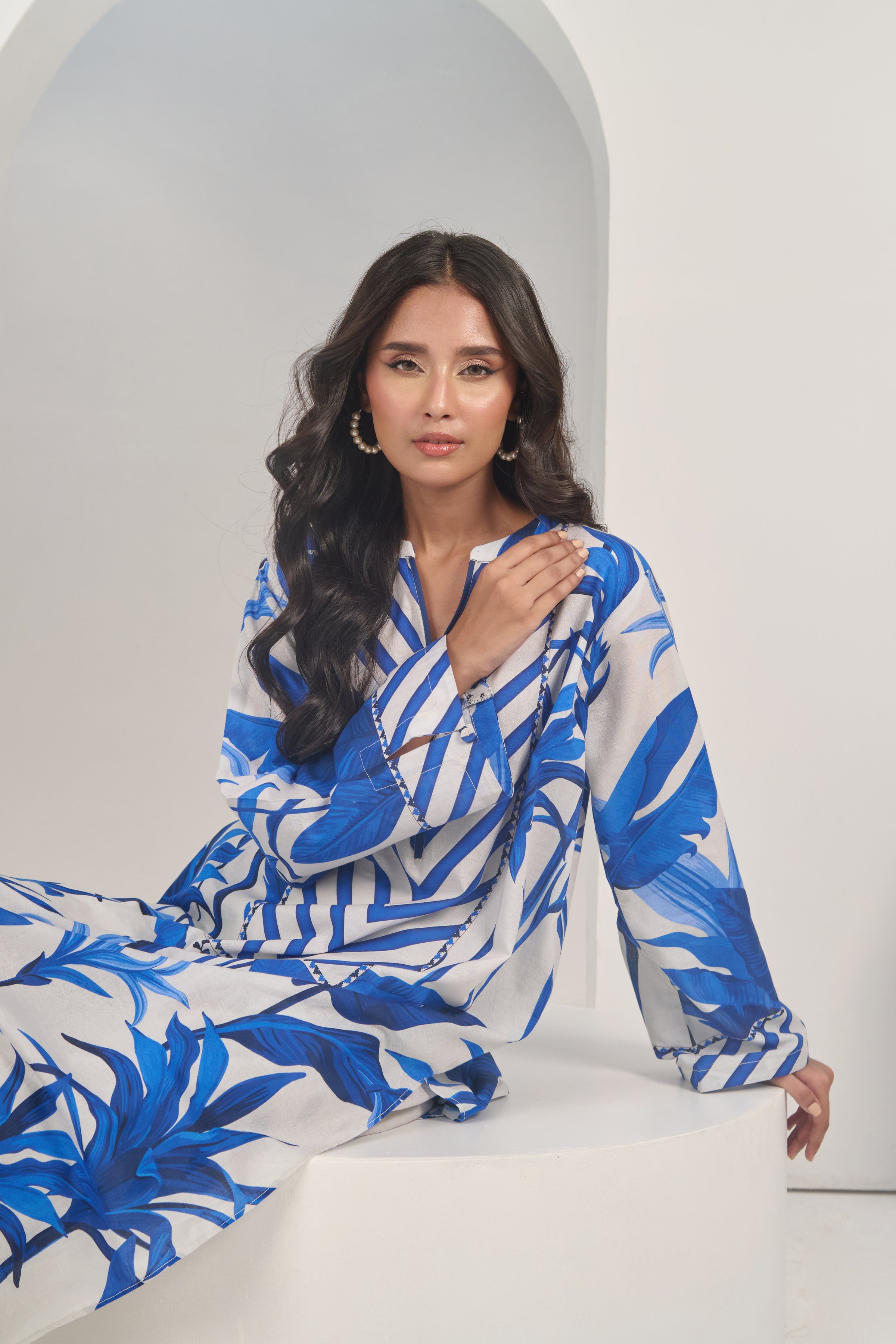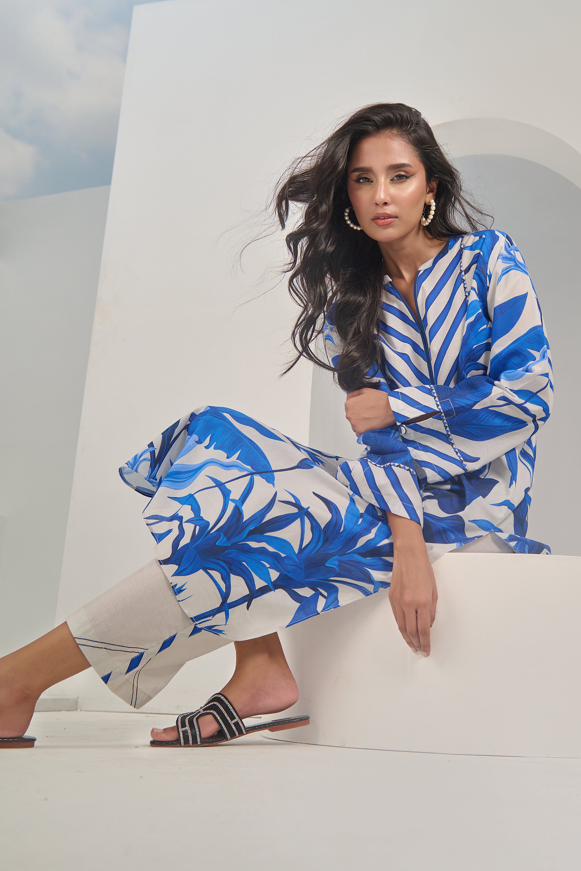 Description: Drape yourself in Blue and Ivory cord set – a classic outfit that speaks volumes in style.