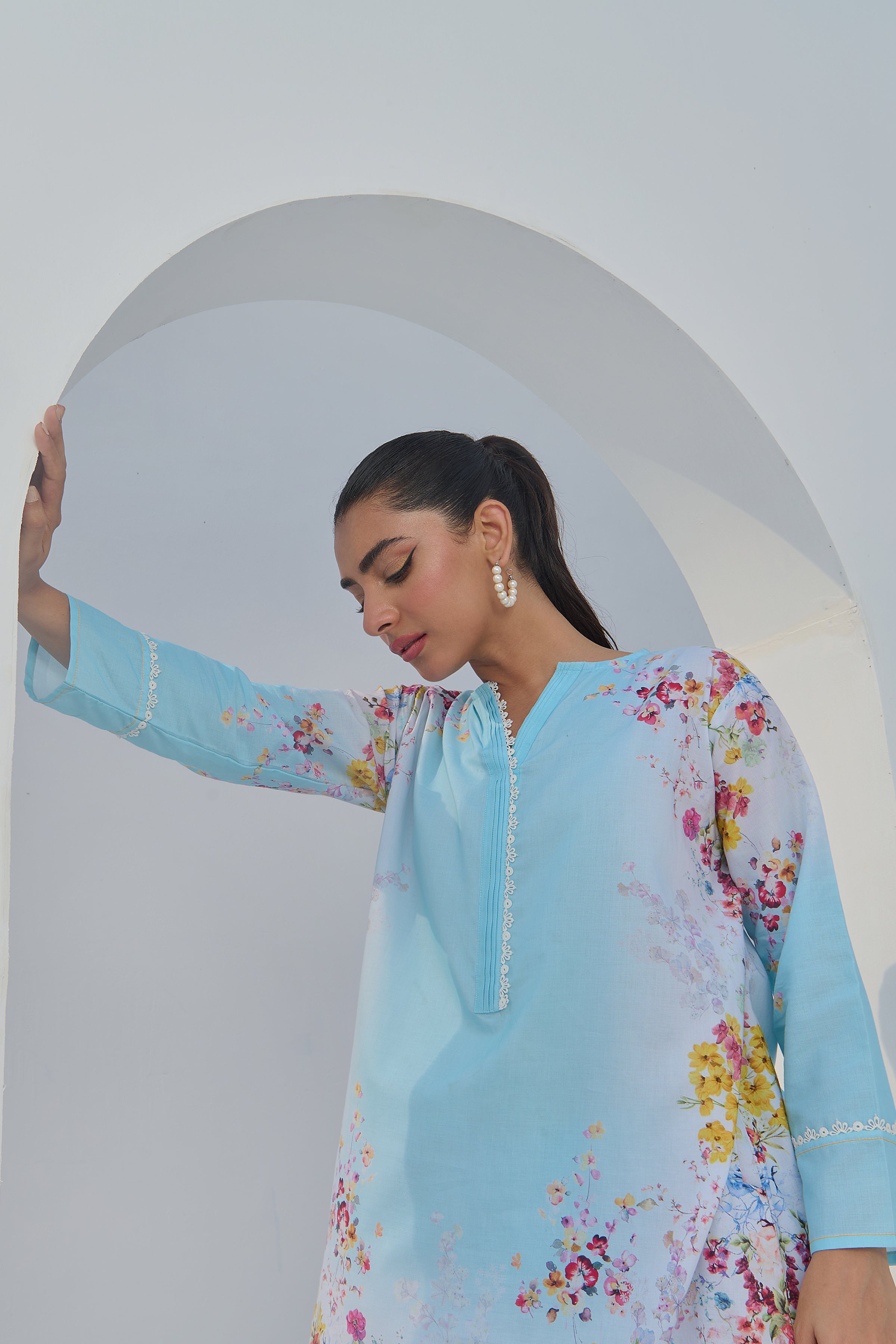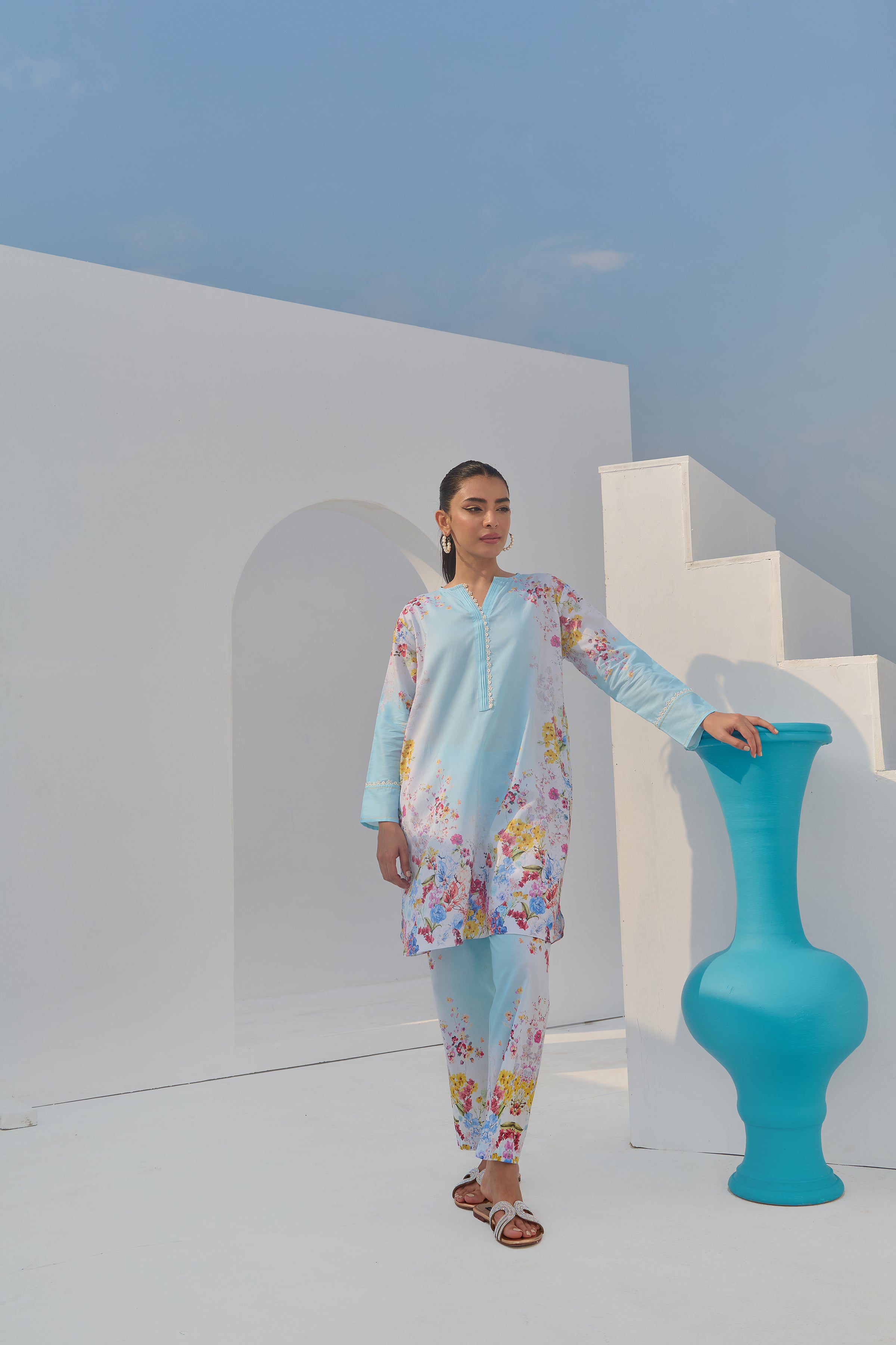 Description: Drape yourself in Sky Blue cord set – a classic outfit that speaks volumes in style.