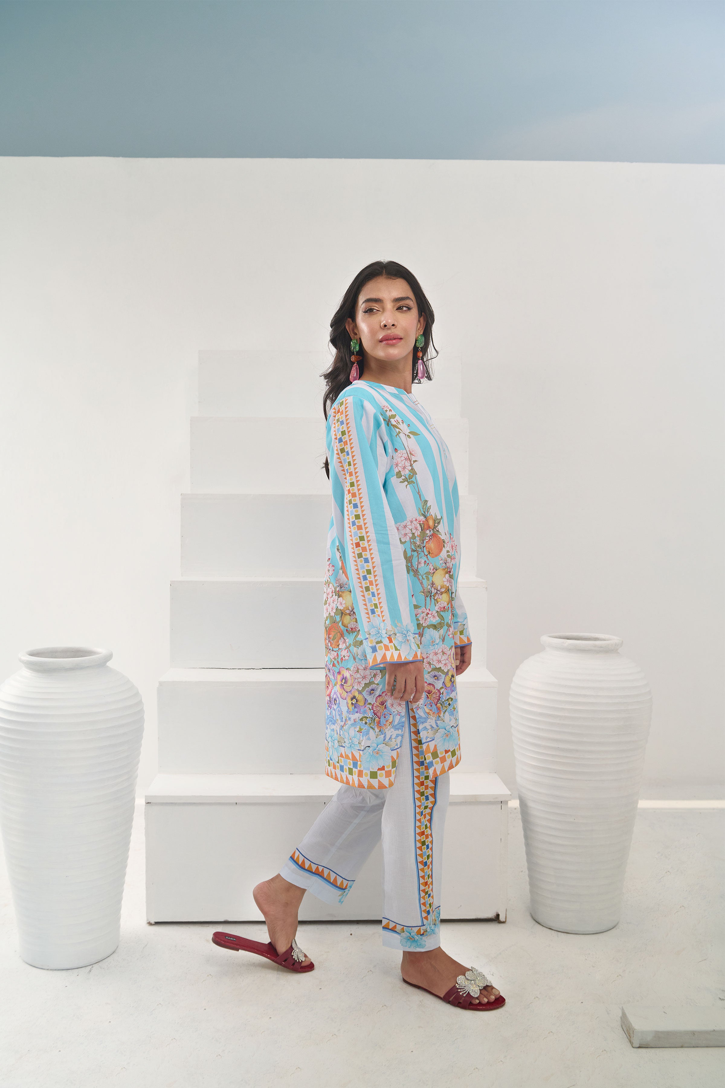 Description: Drape yourself in White & Blue cord set – a classic outfit that speaks volumes in style