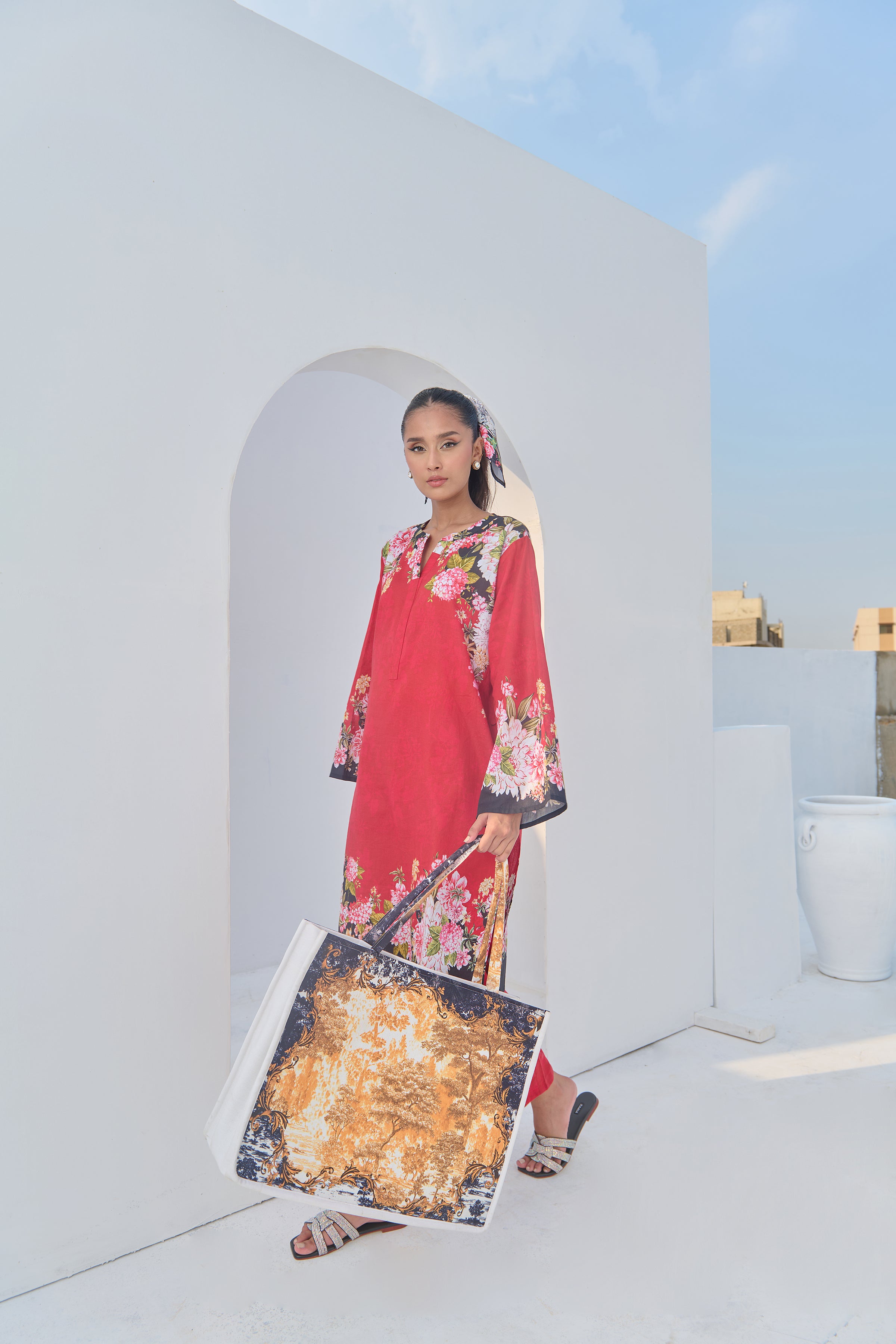 Color: Red and Black with Pink Flowers.