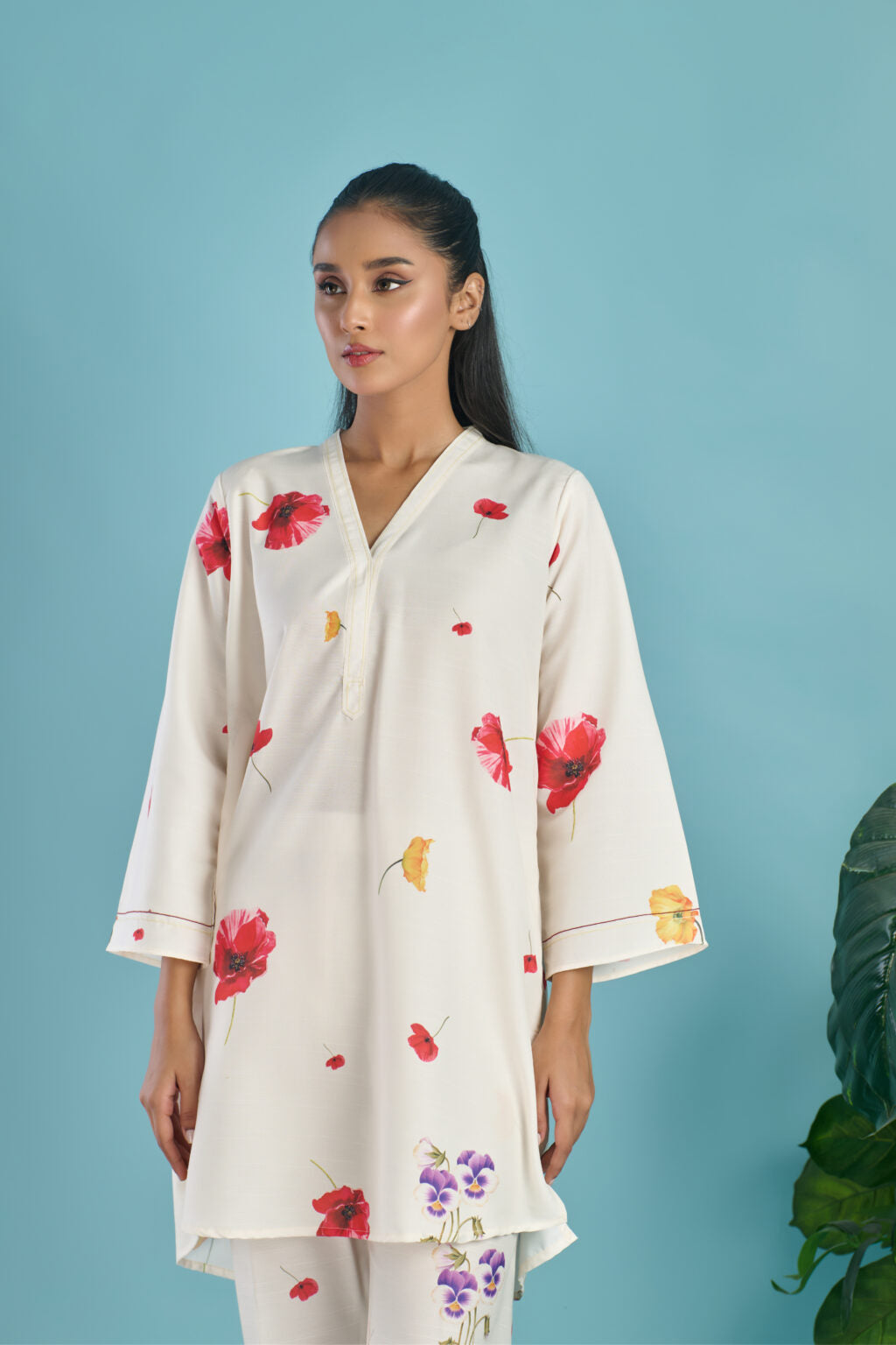 Cut: regular fit shirt and straight pants.