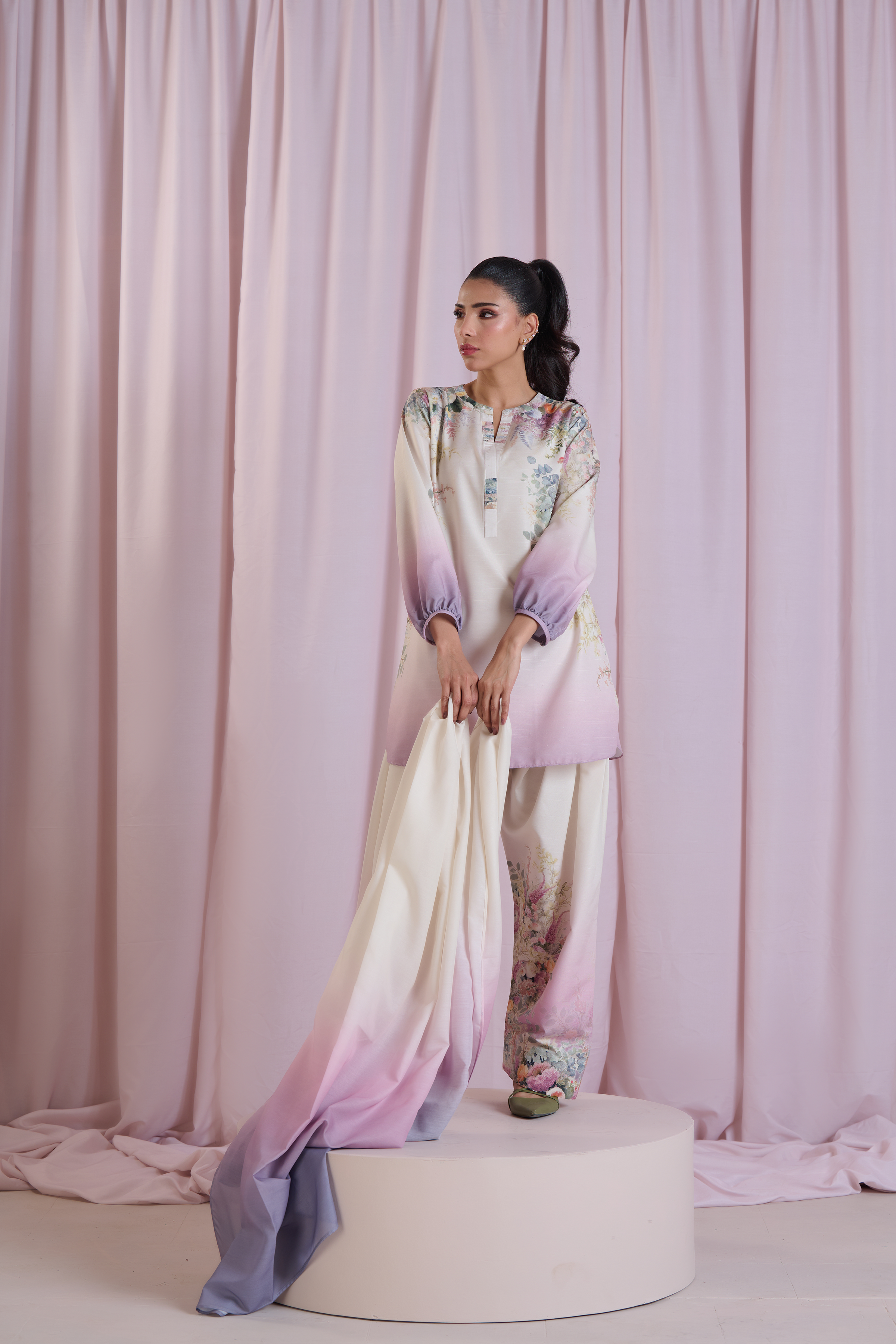 Description: Drape yourself in Ivory Ombre set– a classic outfit that speaks volumes in style