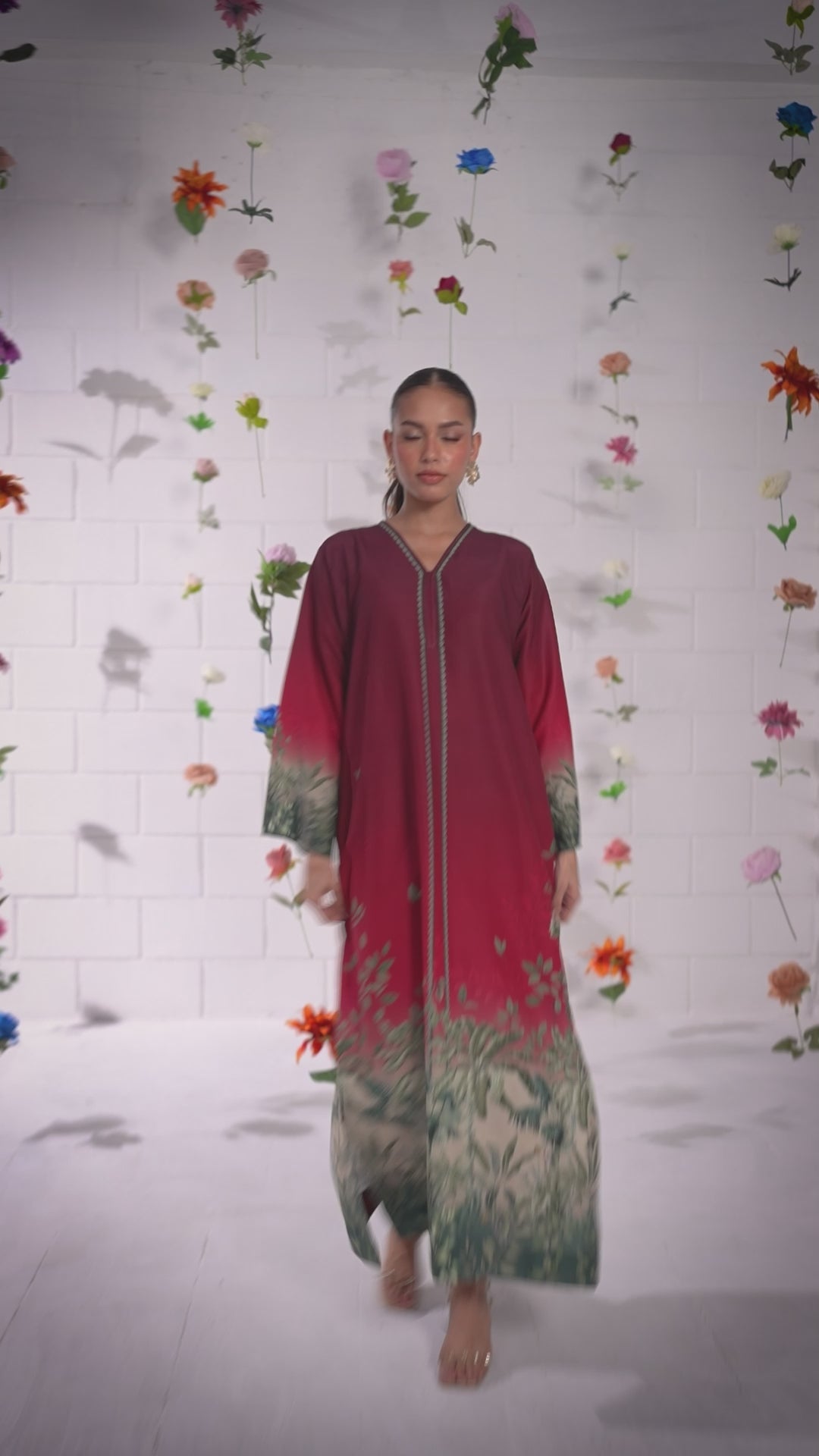 Description: Drape yourself in Mulberry Red Kaftan– a classic outfit that speaks volumes in style.