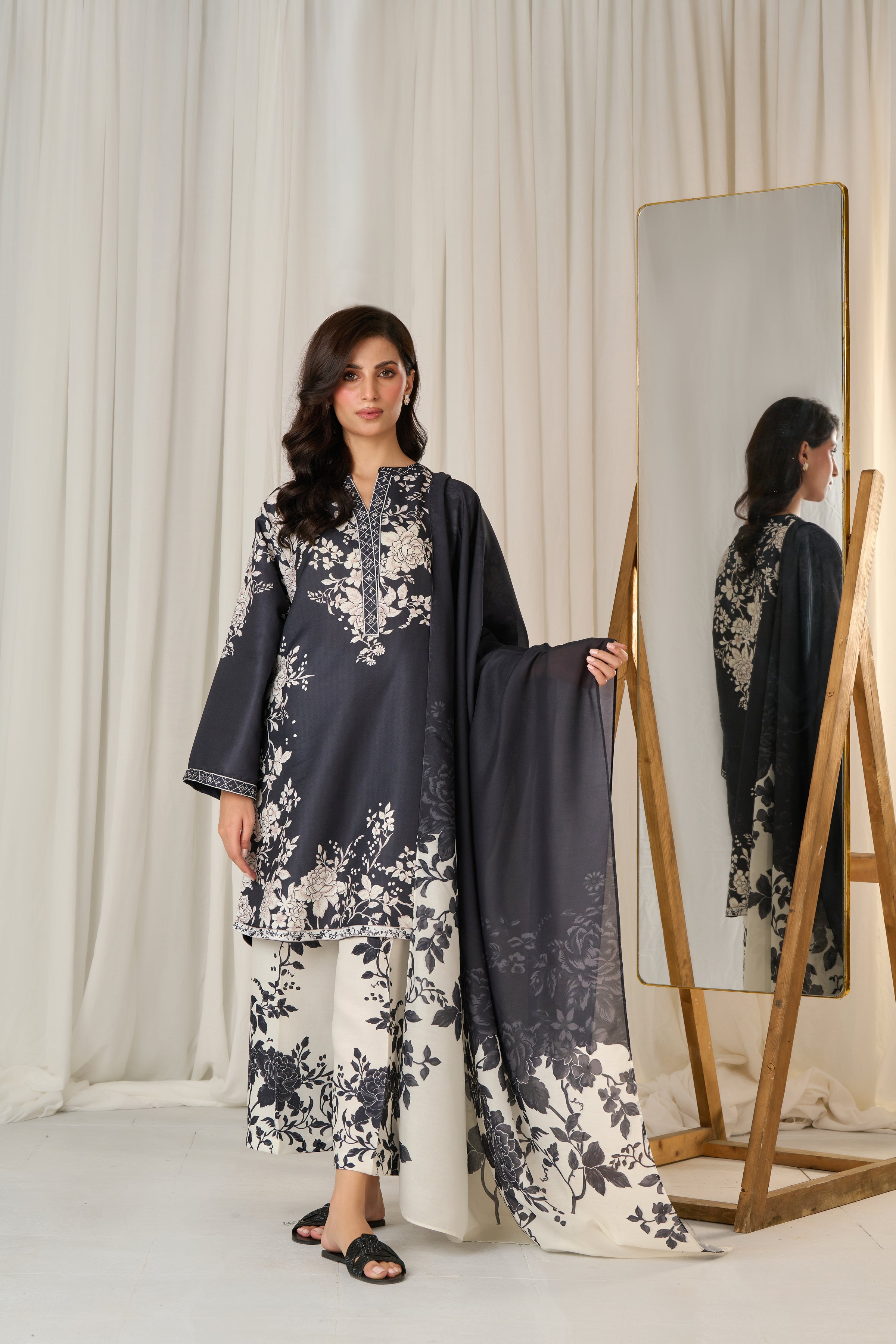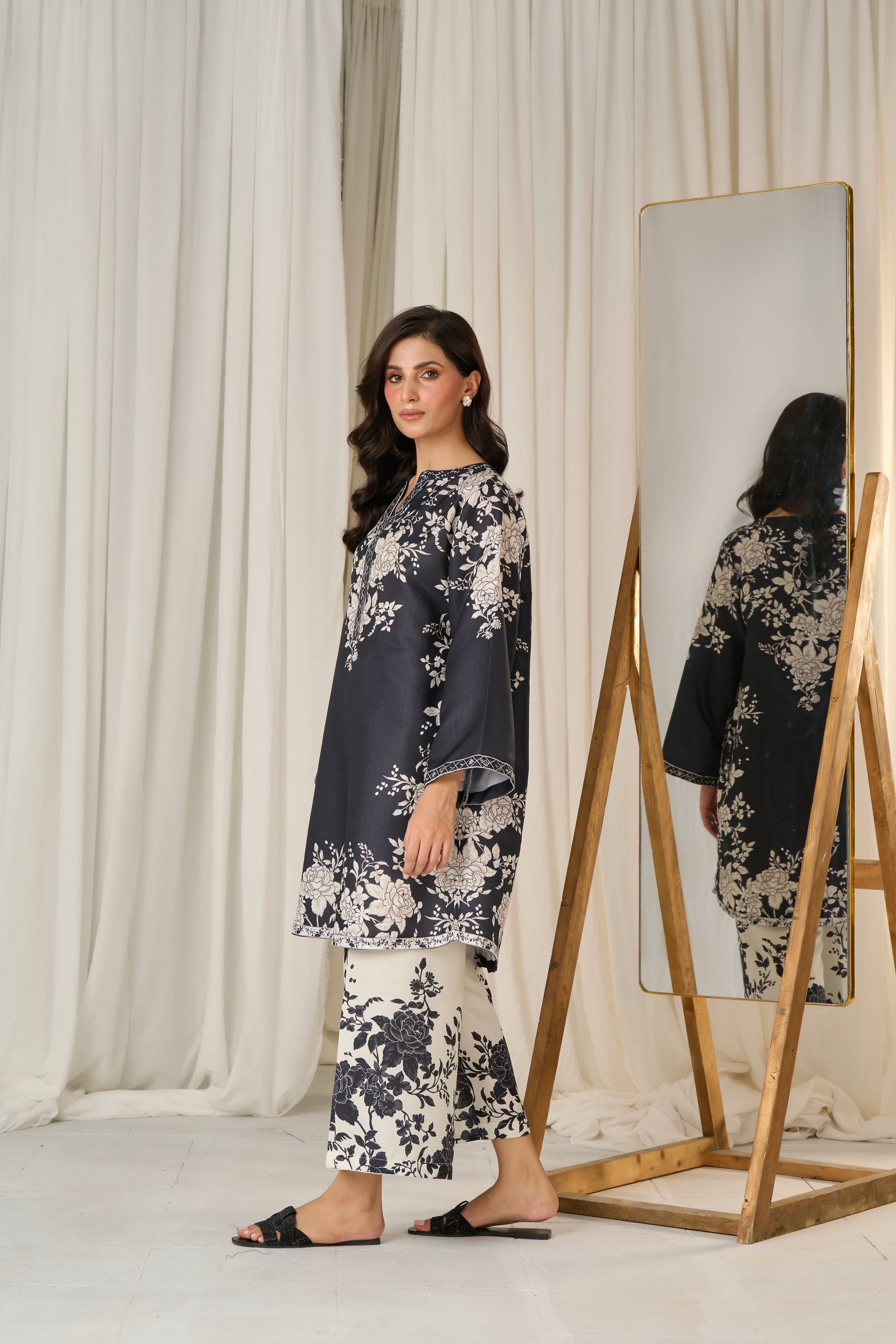 Description: Drape yourself in Black and Off-white set– a classic outfit that speaks volumes in style