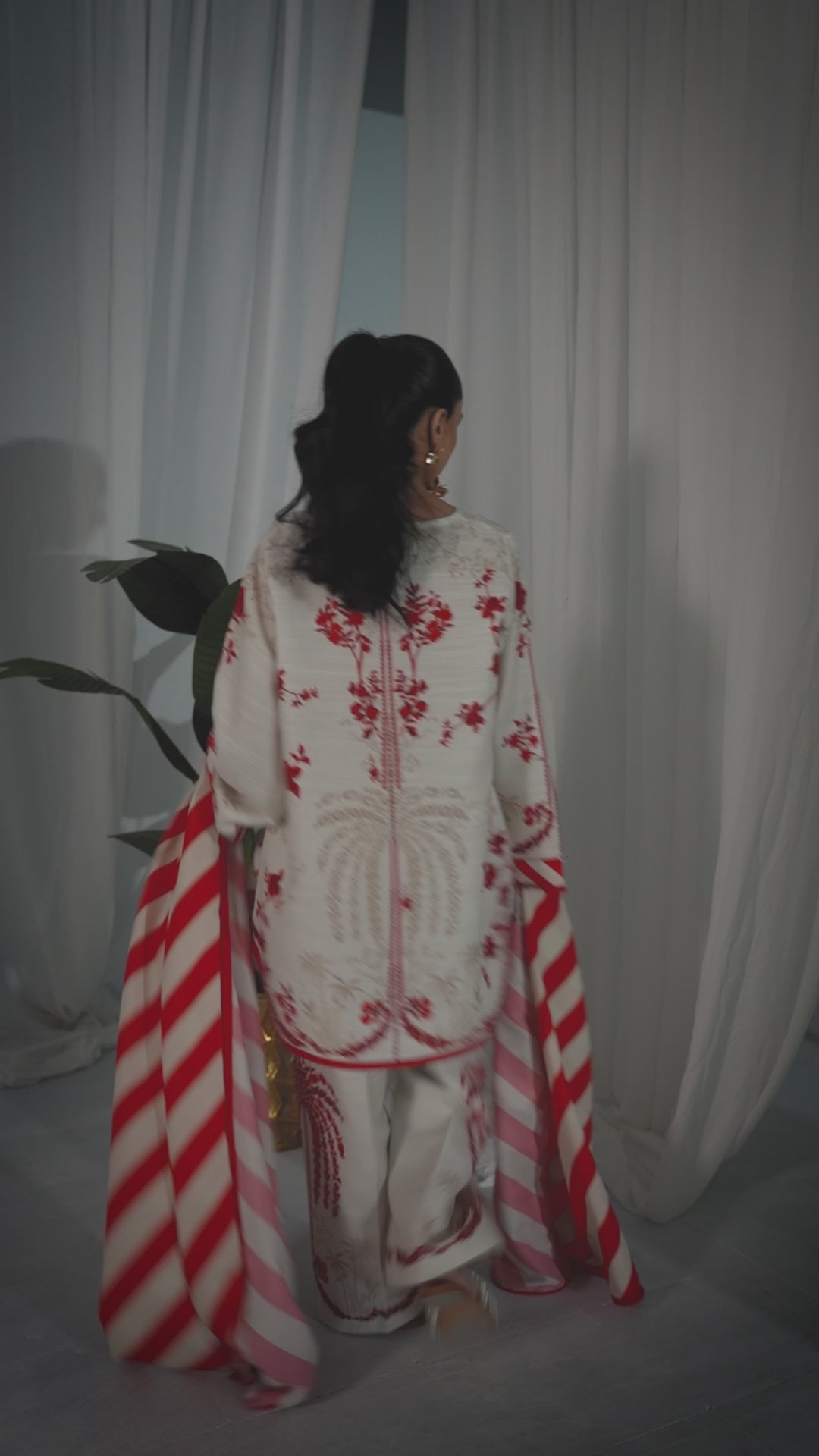 Description: Drape yourself in Ivory and Red set– a classic outfit that speaks volumes in style.