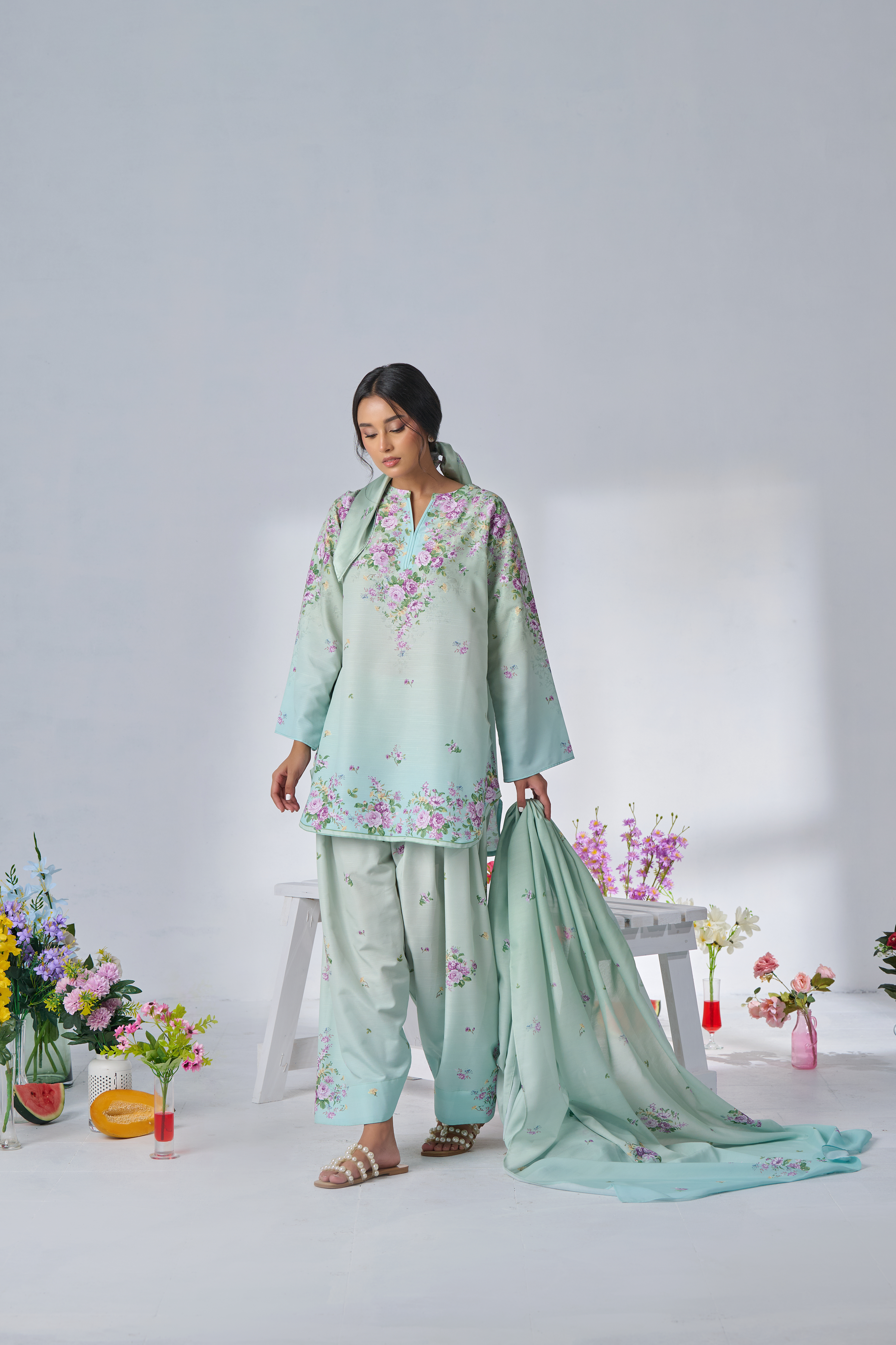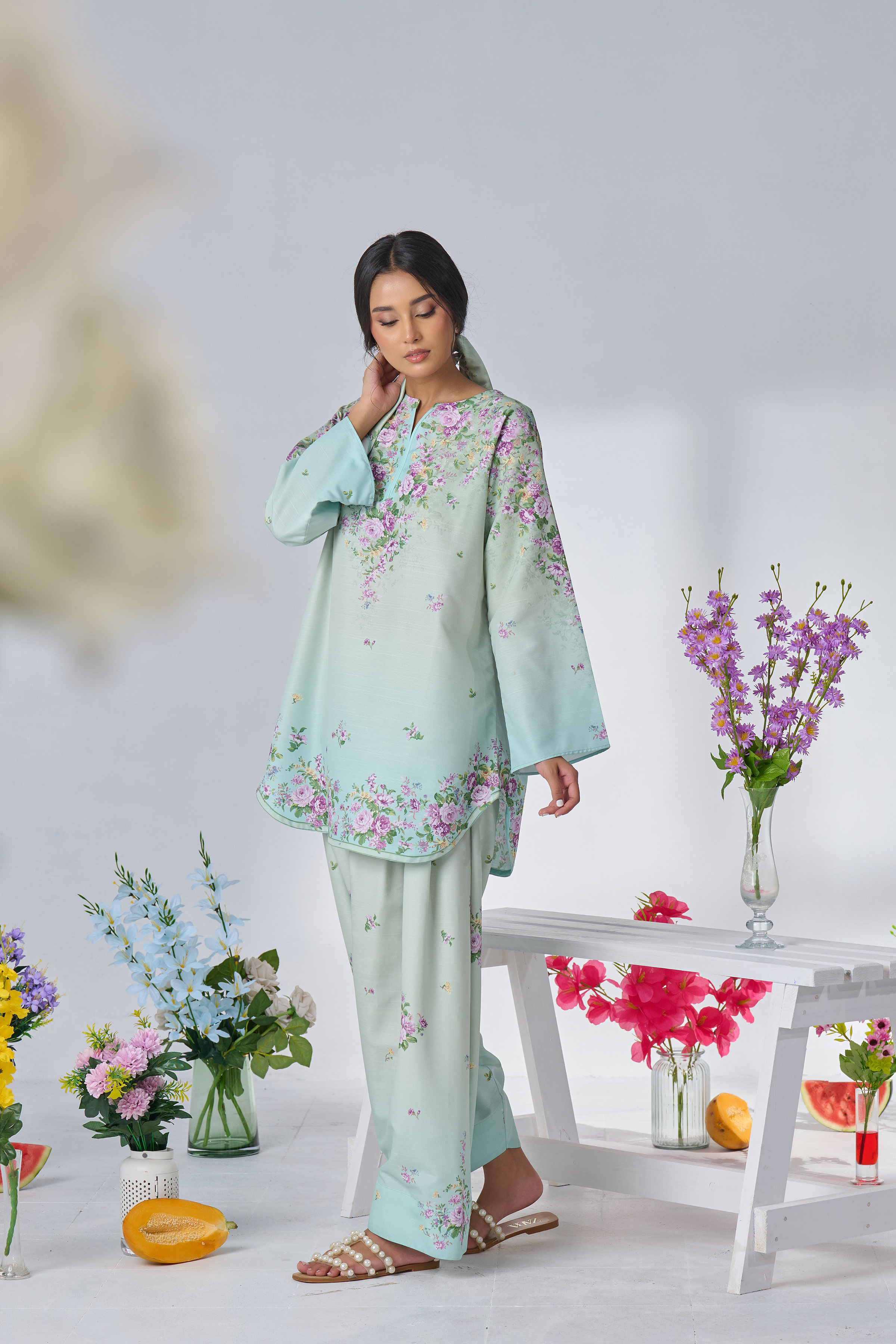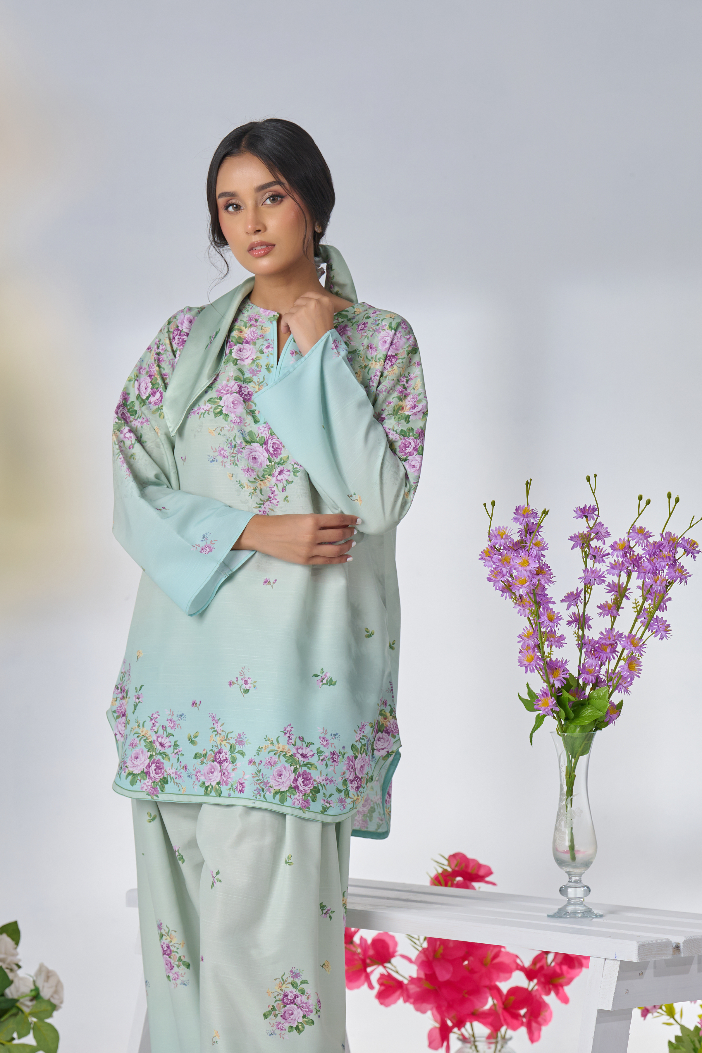 Description: Drape yourself in Pistachio Ombre set– a classic outfit that speaks volumes in style.