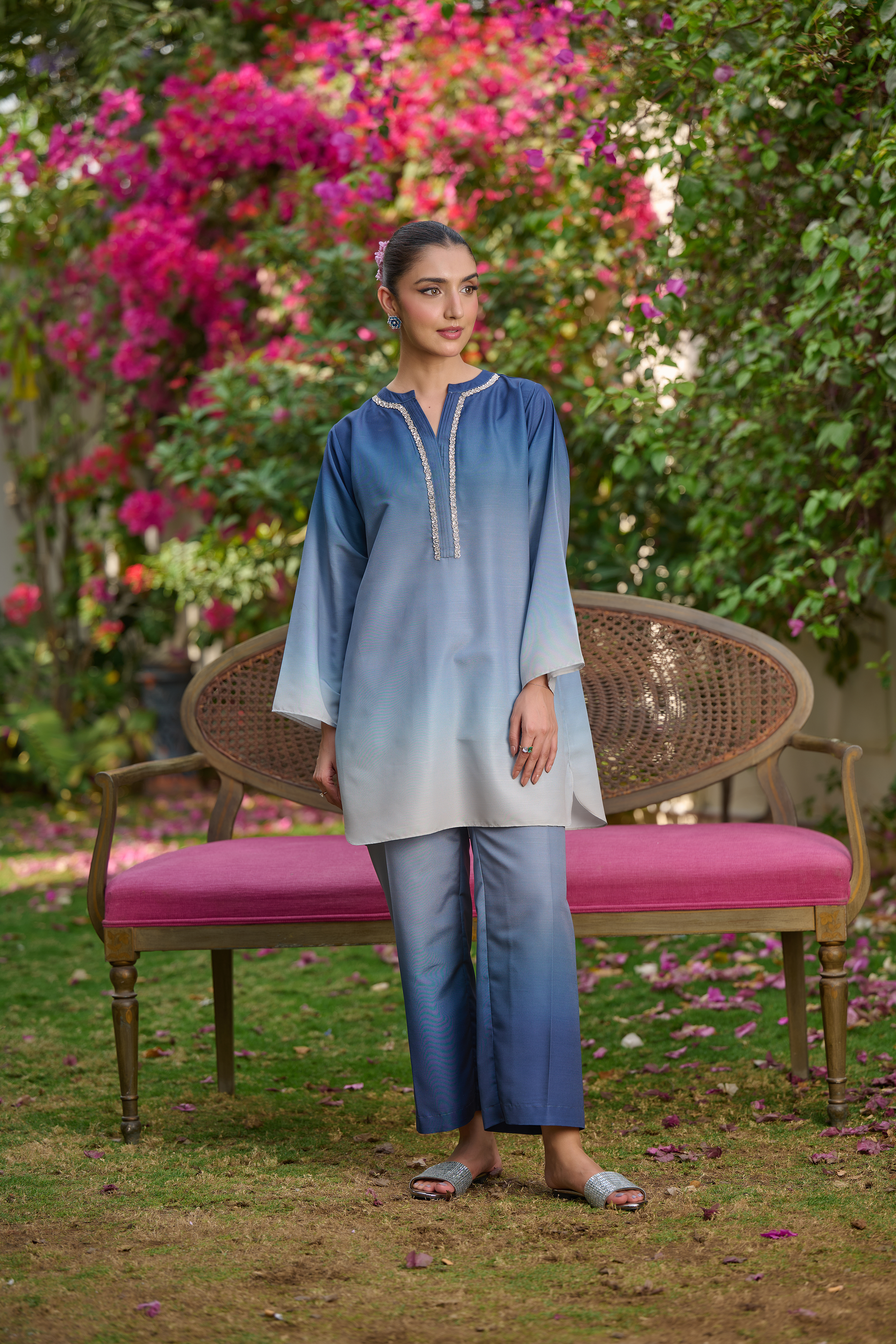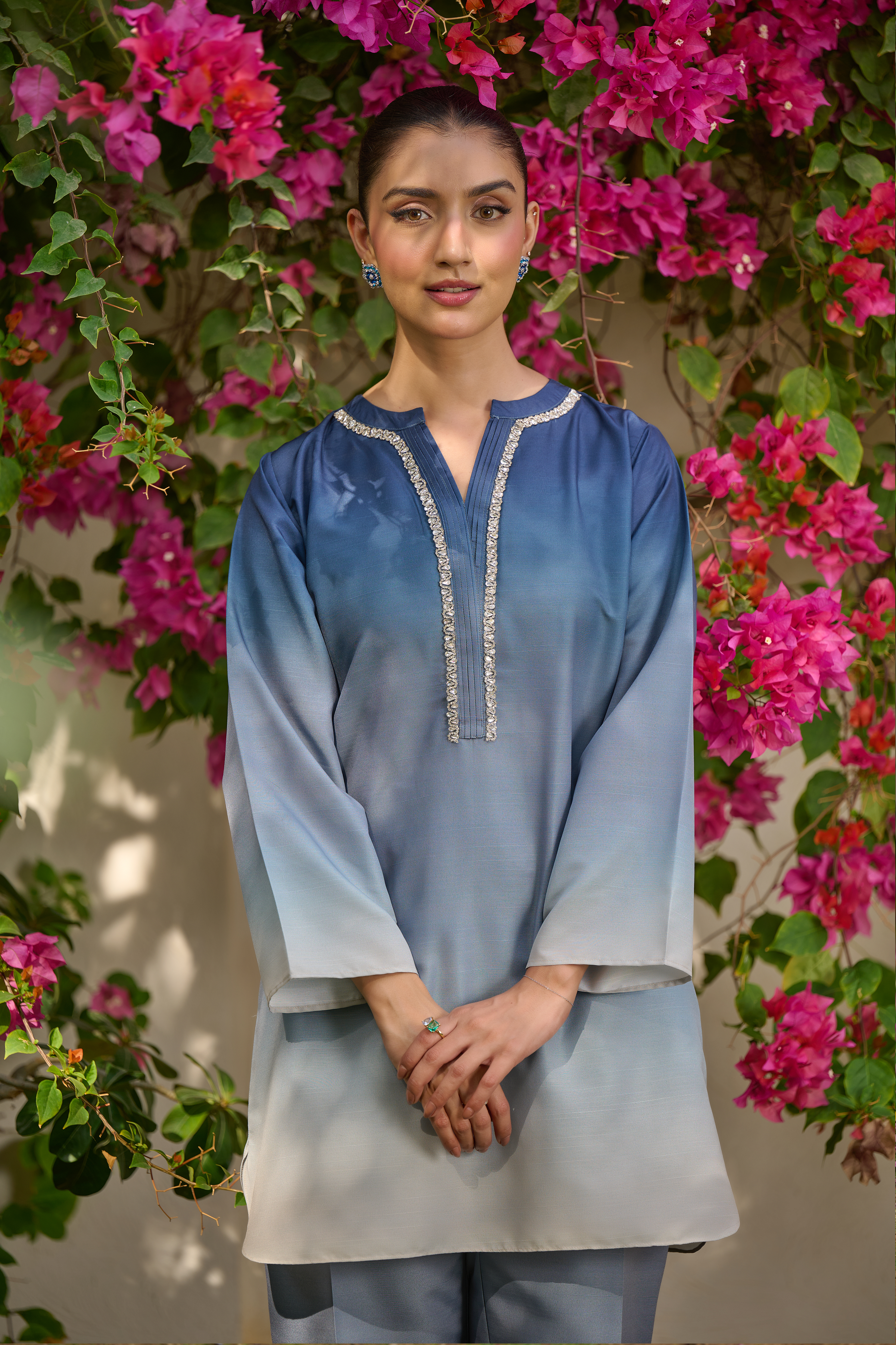 Description: Drape yourself in Blue Ombre set– a classic outfit that speaks volumes in style.