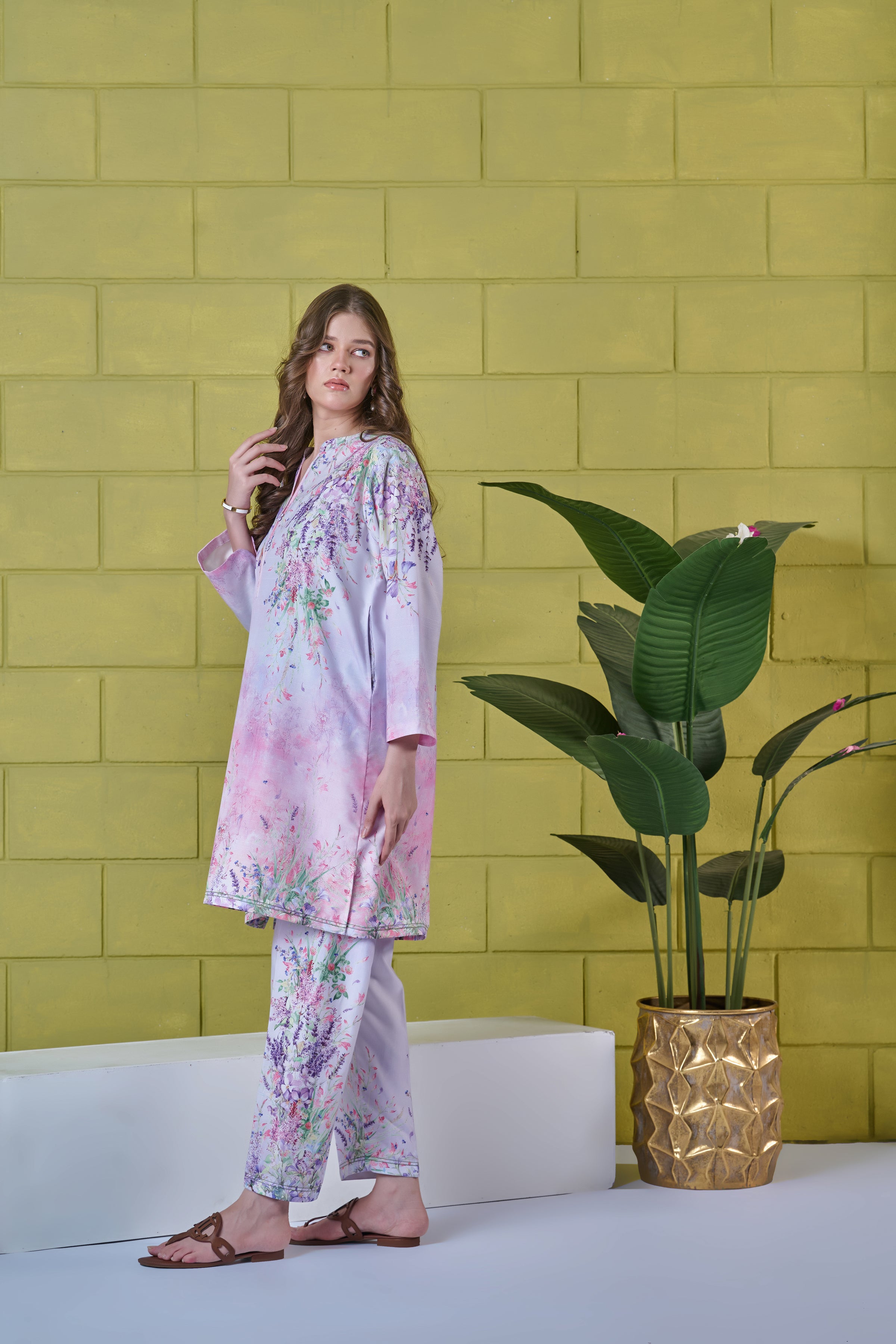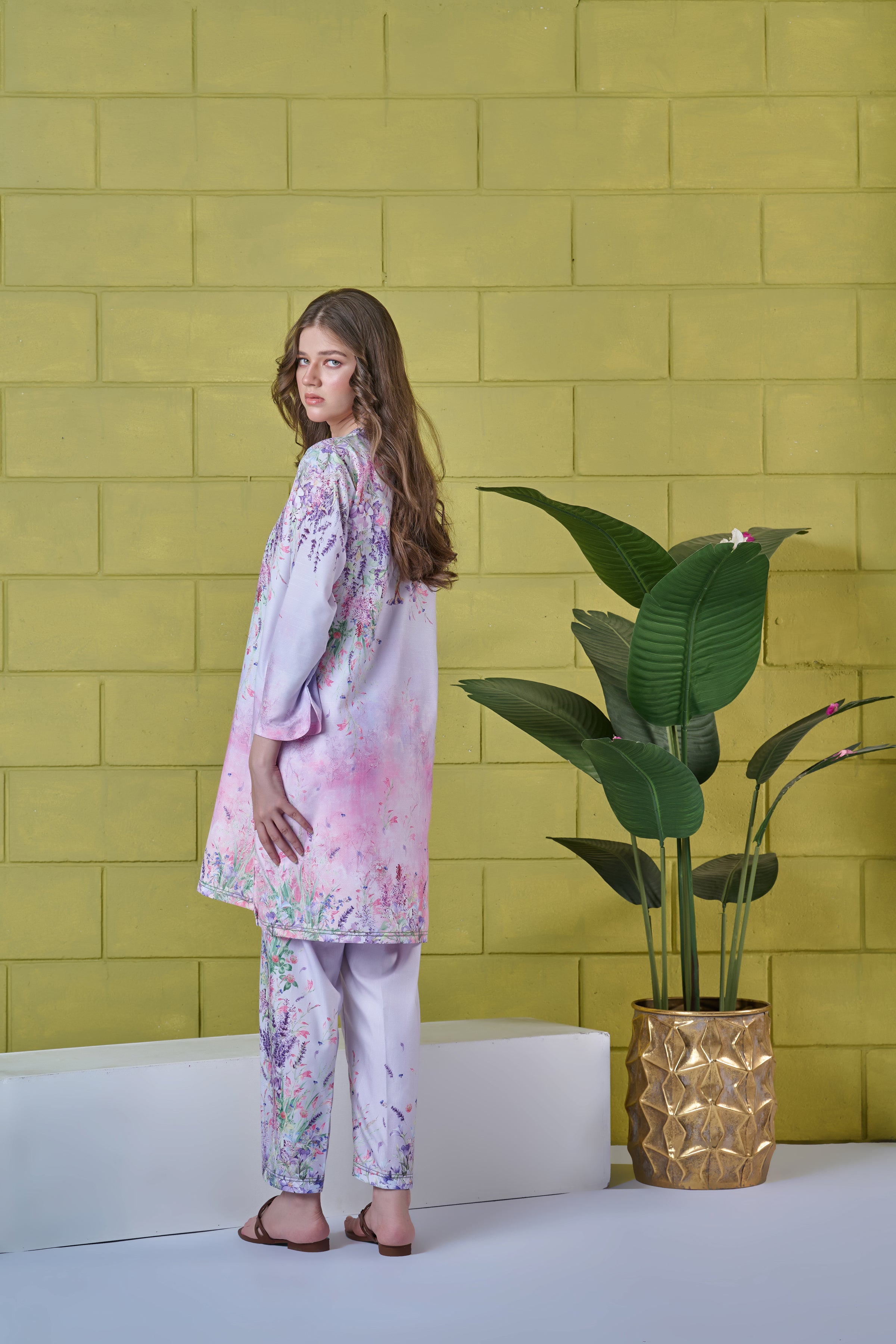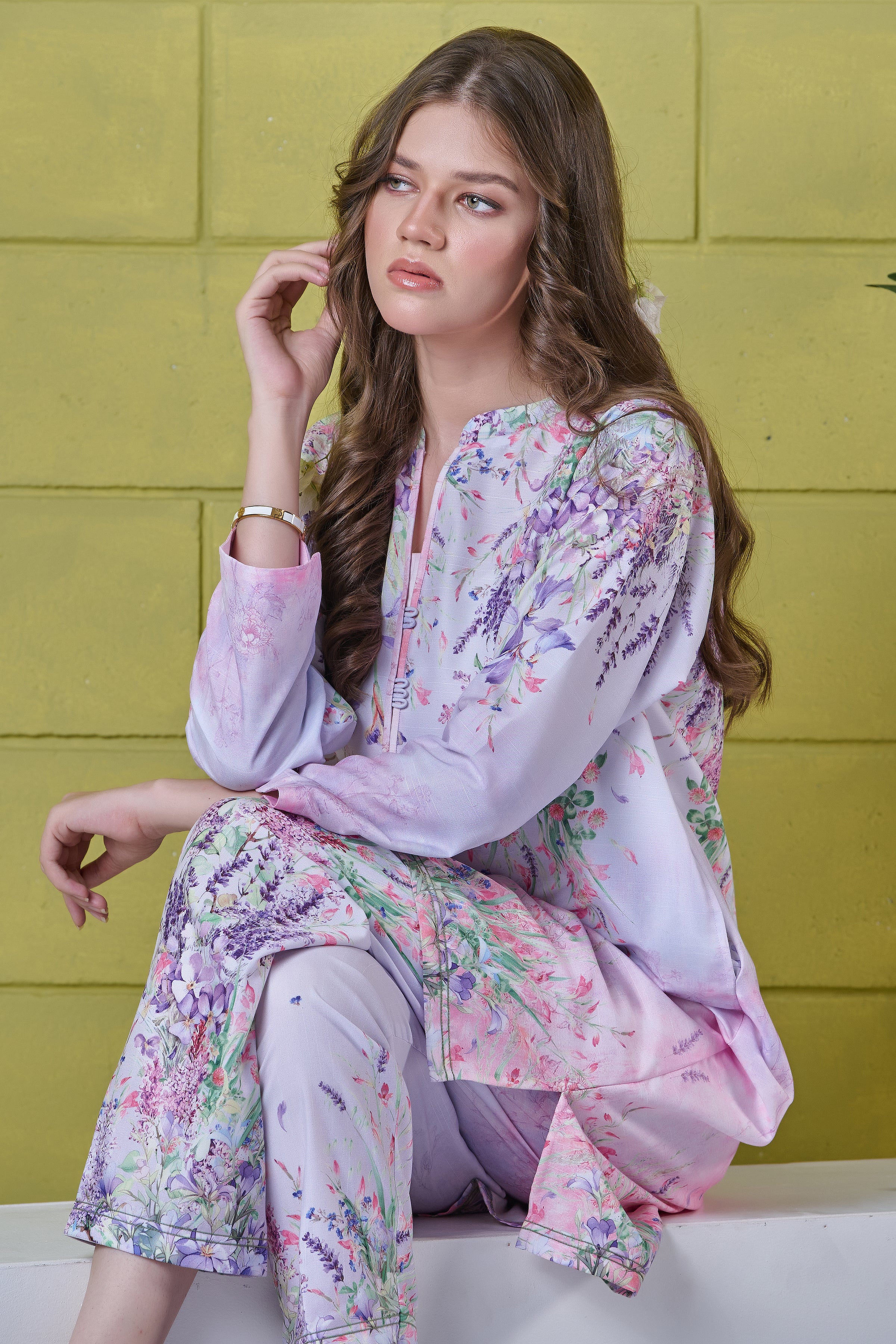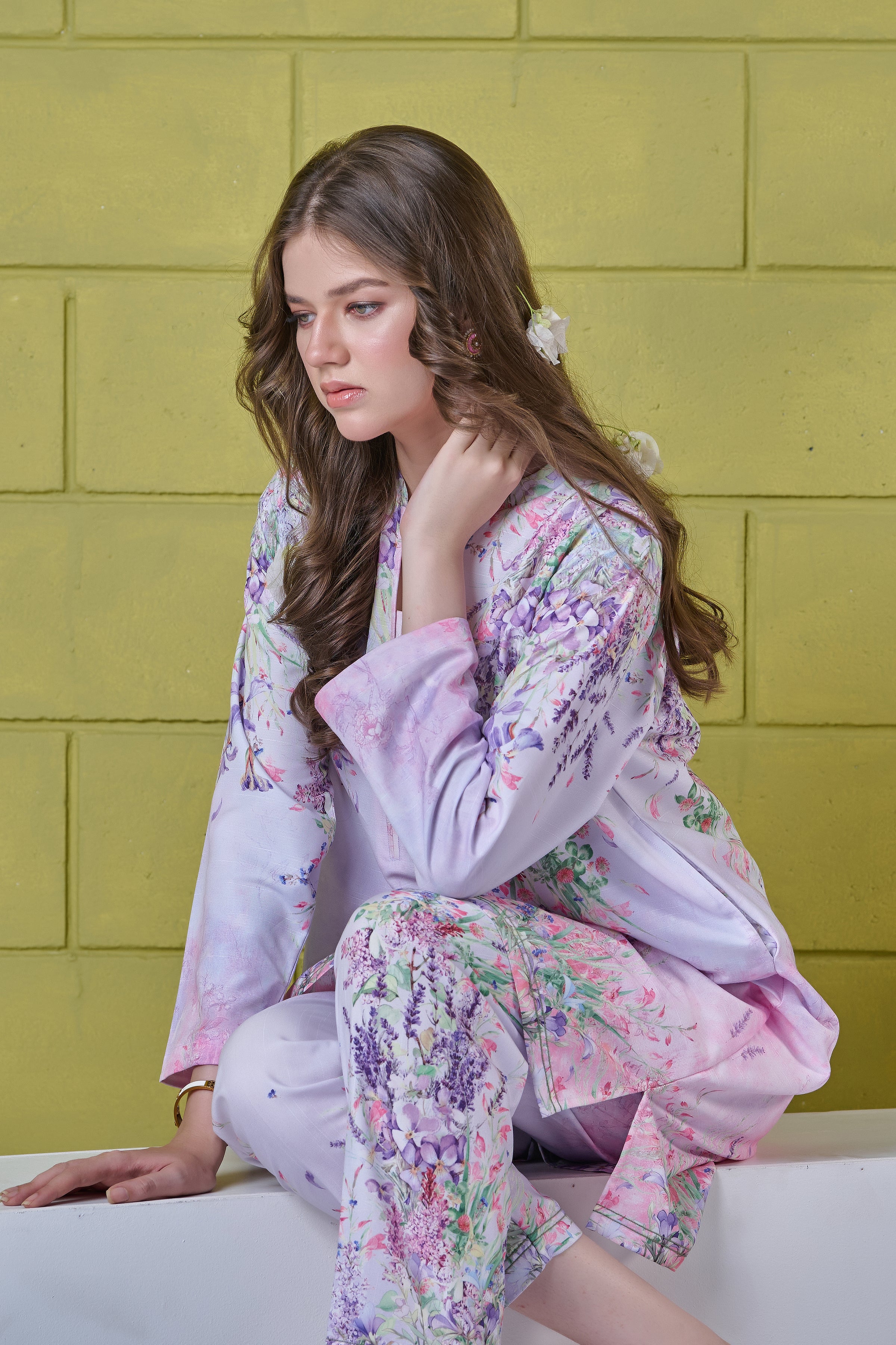 Color: Light purple with multi pastel flowers.