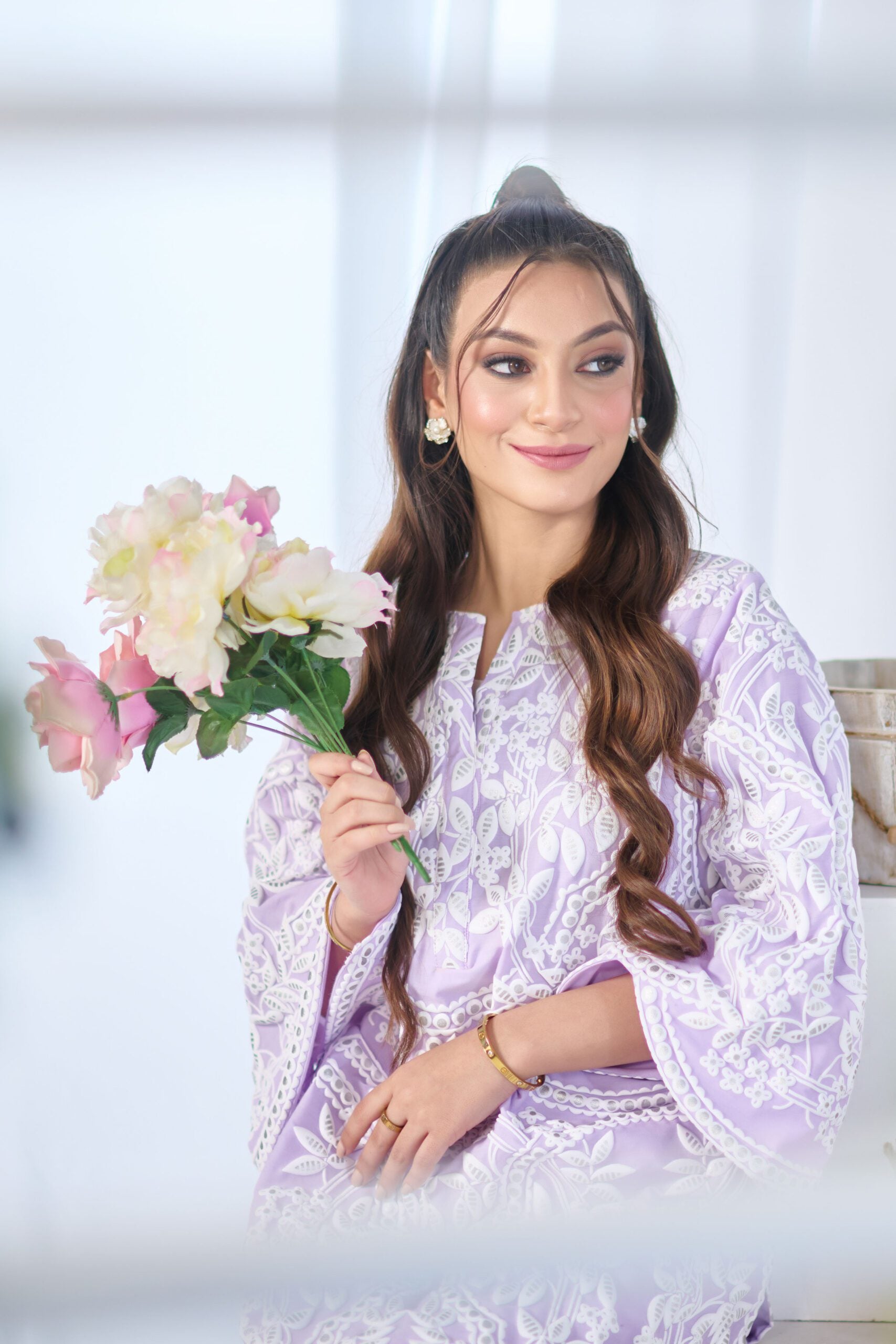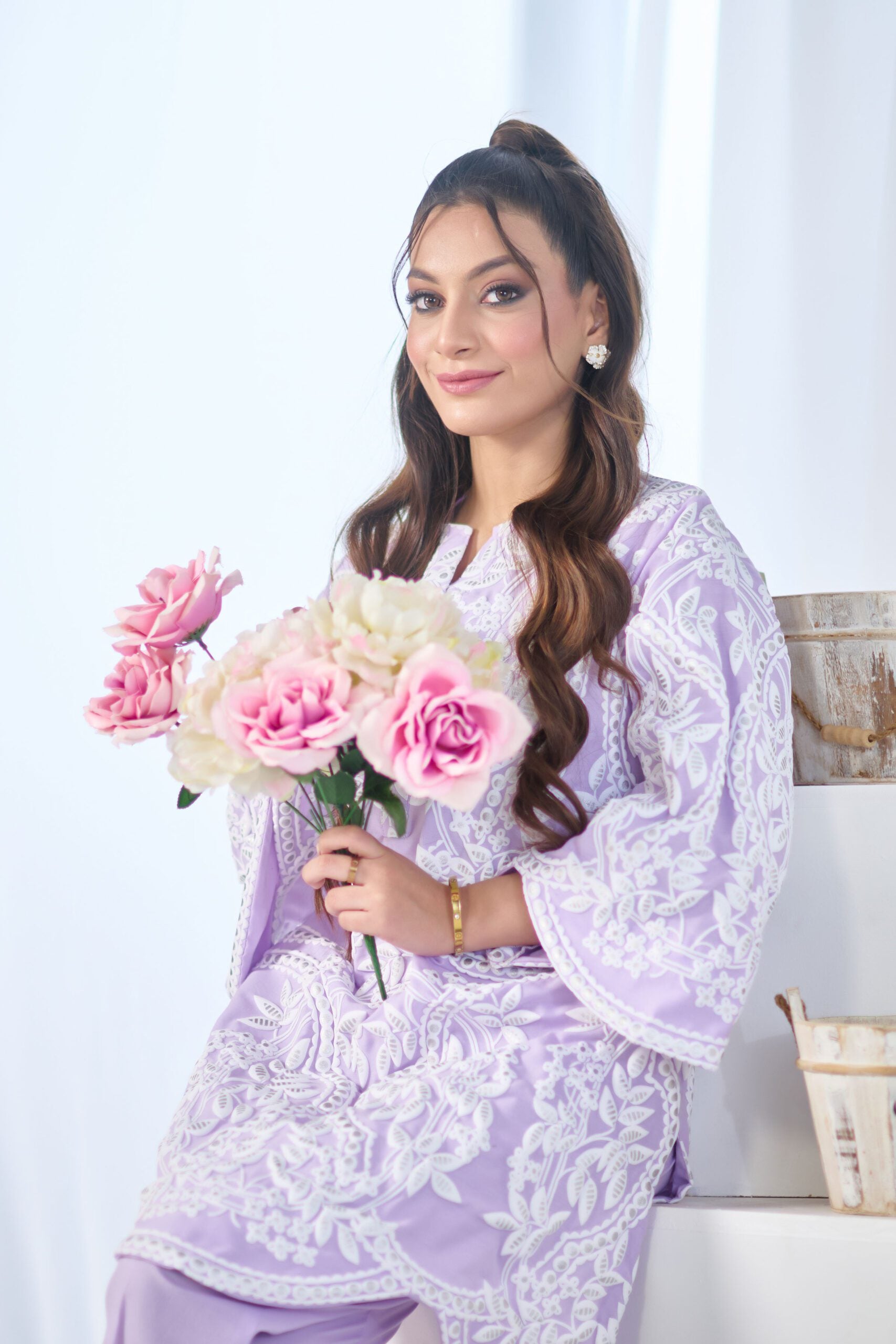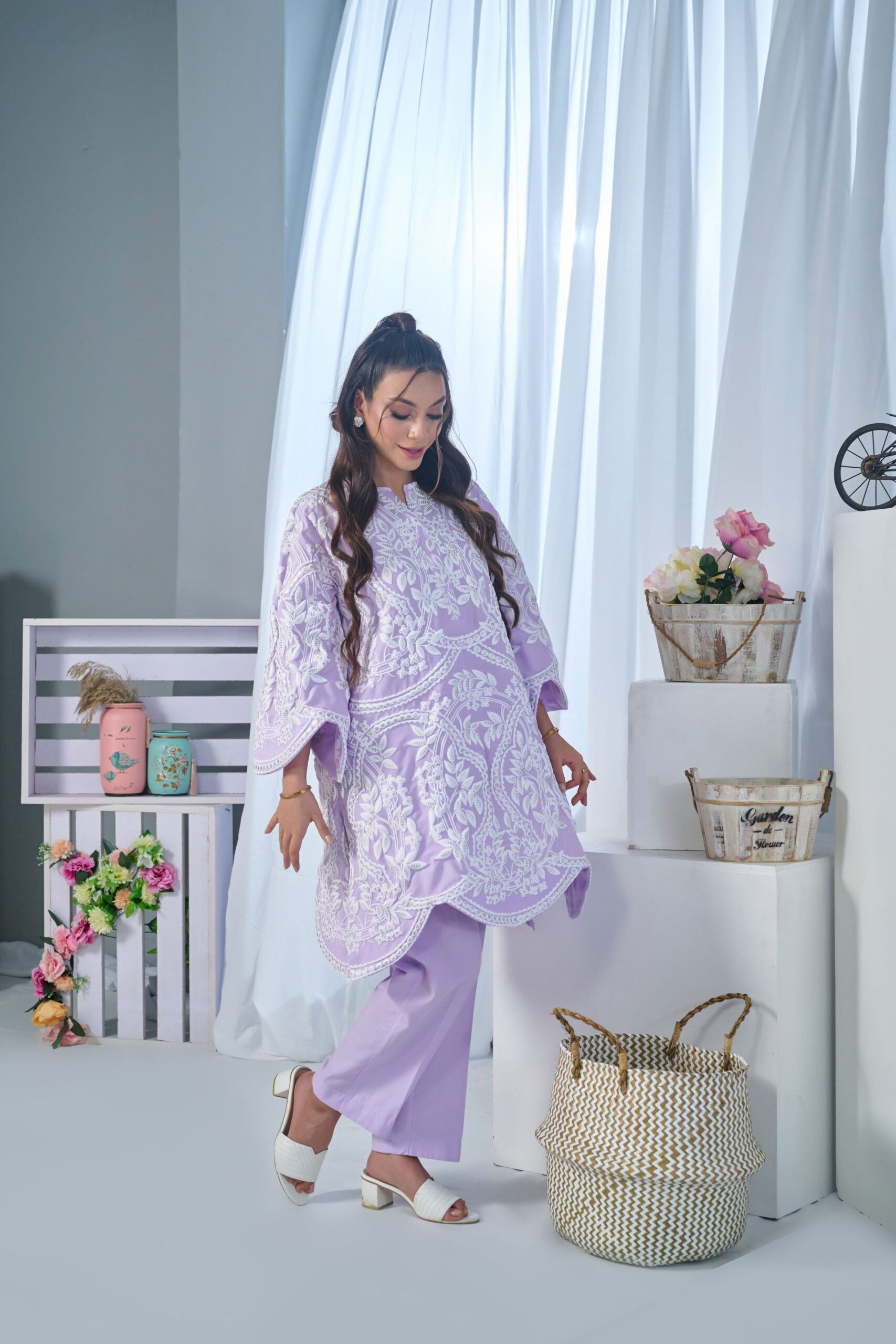 Drape yourself in lavender premium cotton two-piece ensemble – a classic outfit that speaks volumes in style.