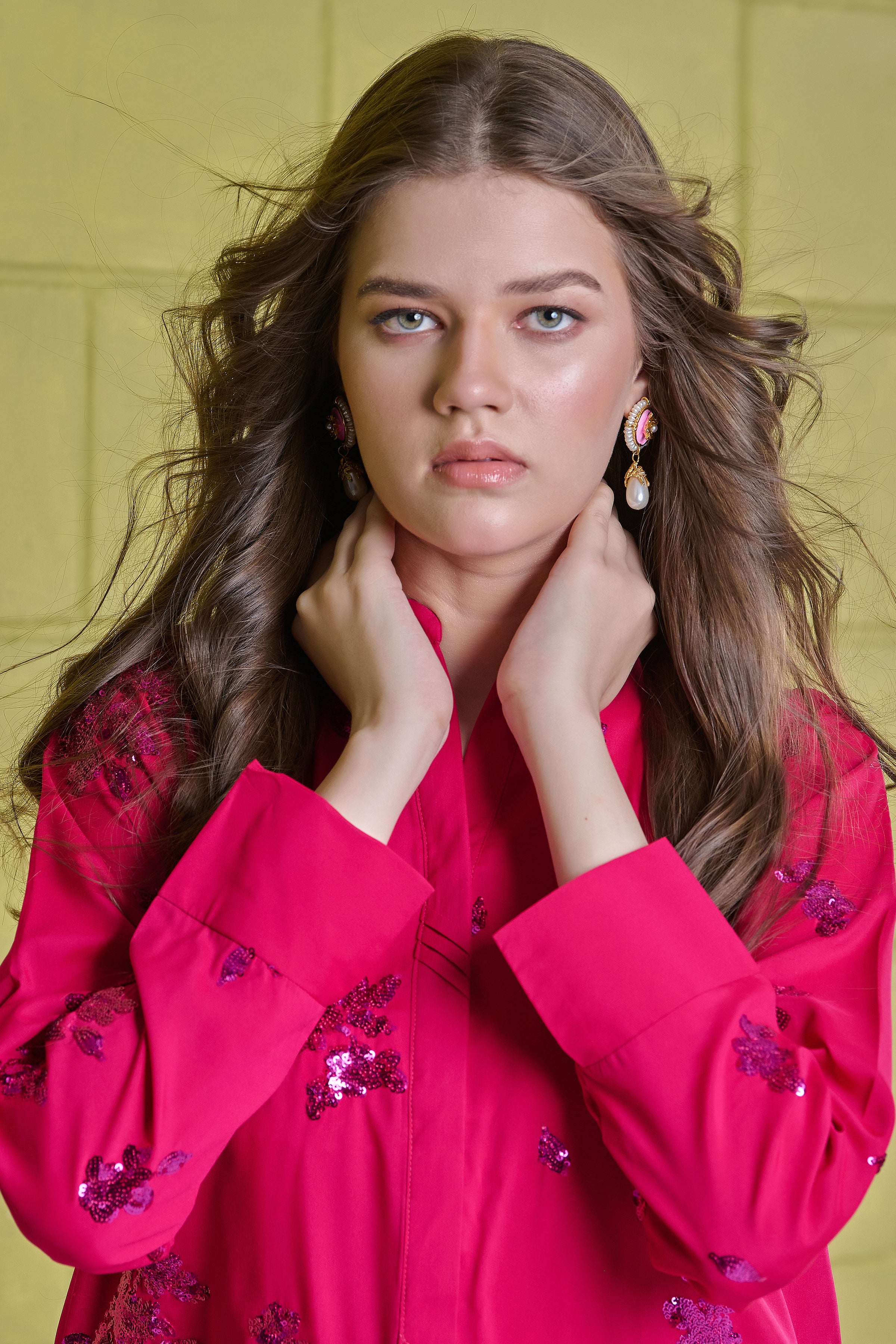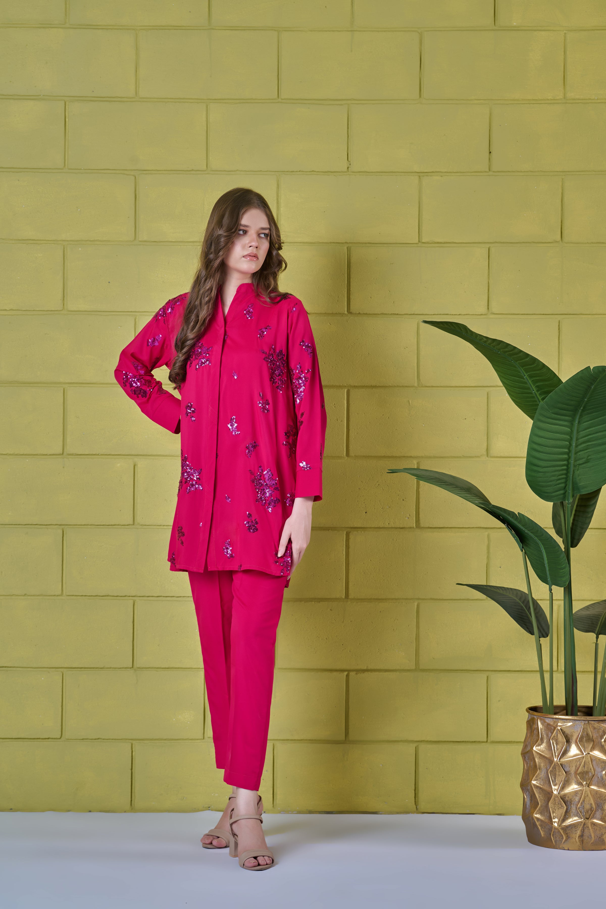 Description: Drape yourself in pink cord set – a classic outfit that speaks volumes in style.