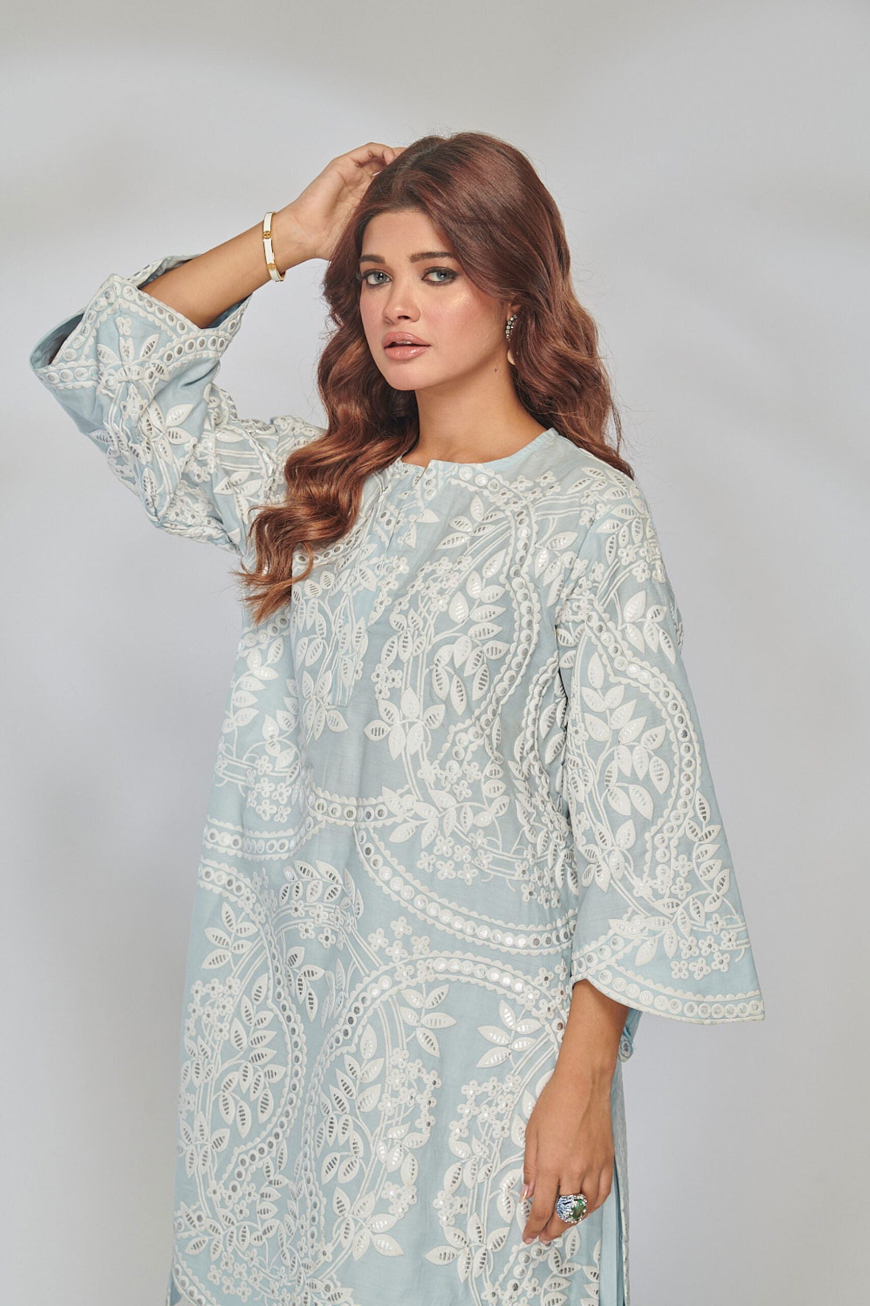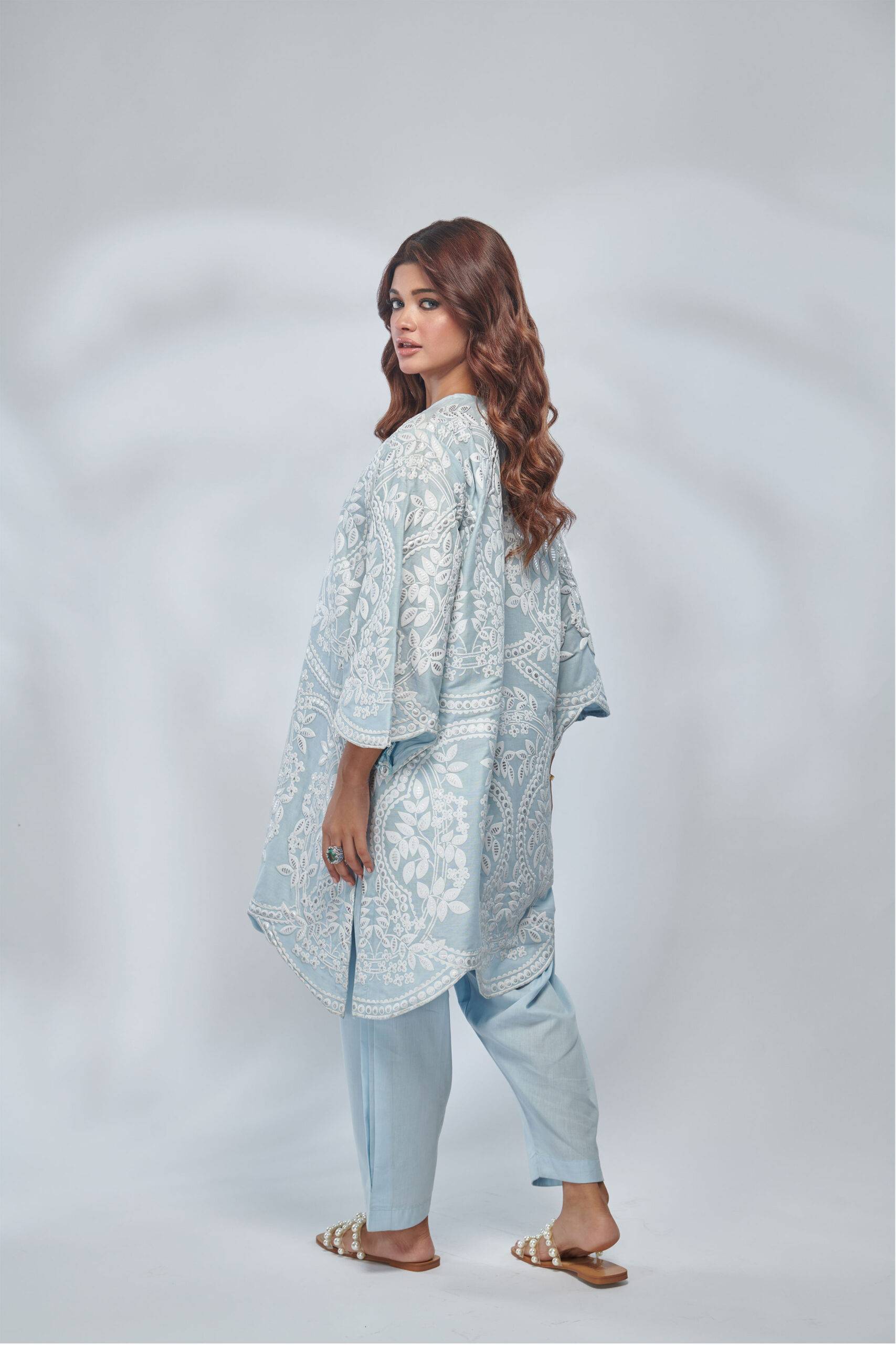 Drape yourself in sky blue premium cotton two-piece ensemble – a classic outfit that speaks volumes in style.
