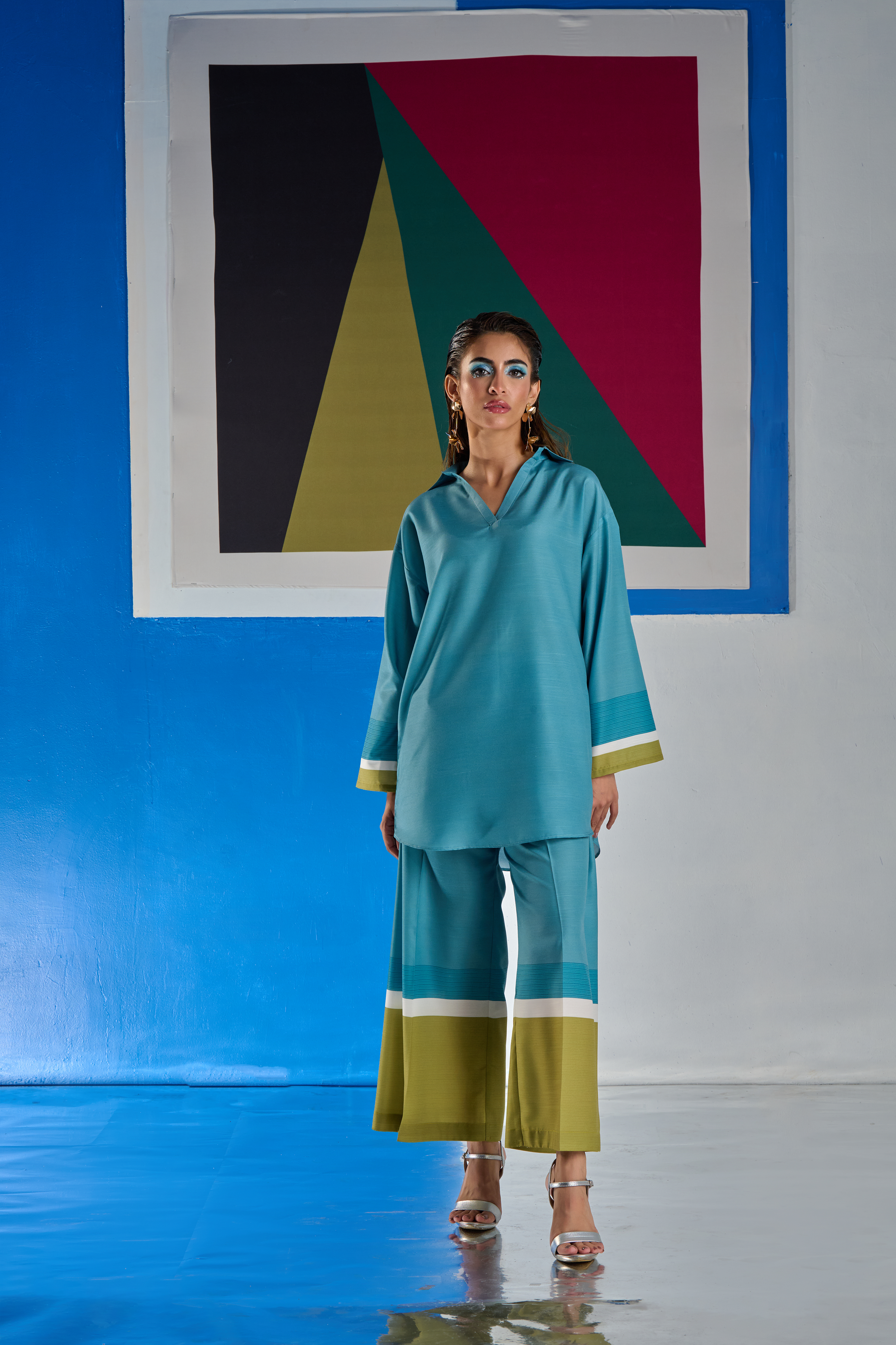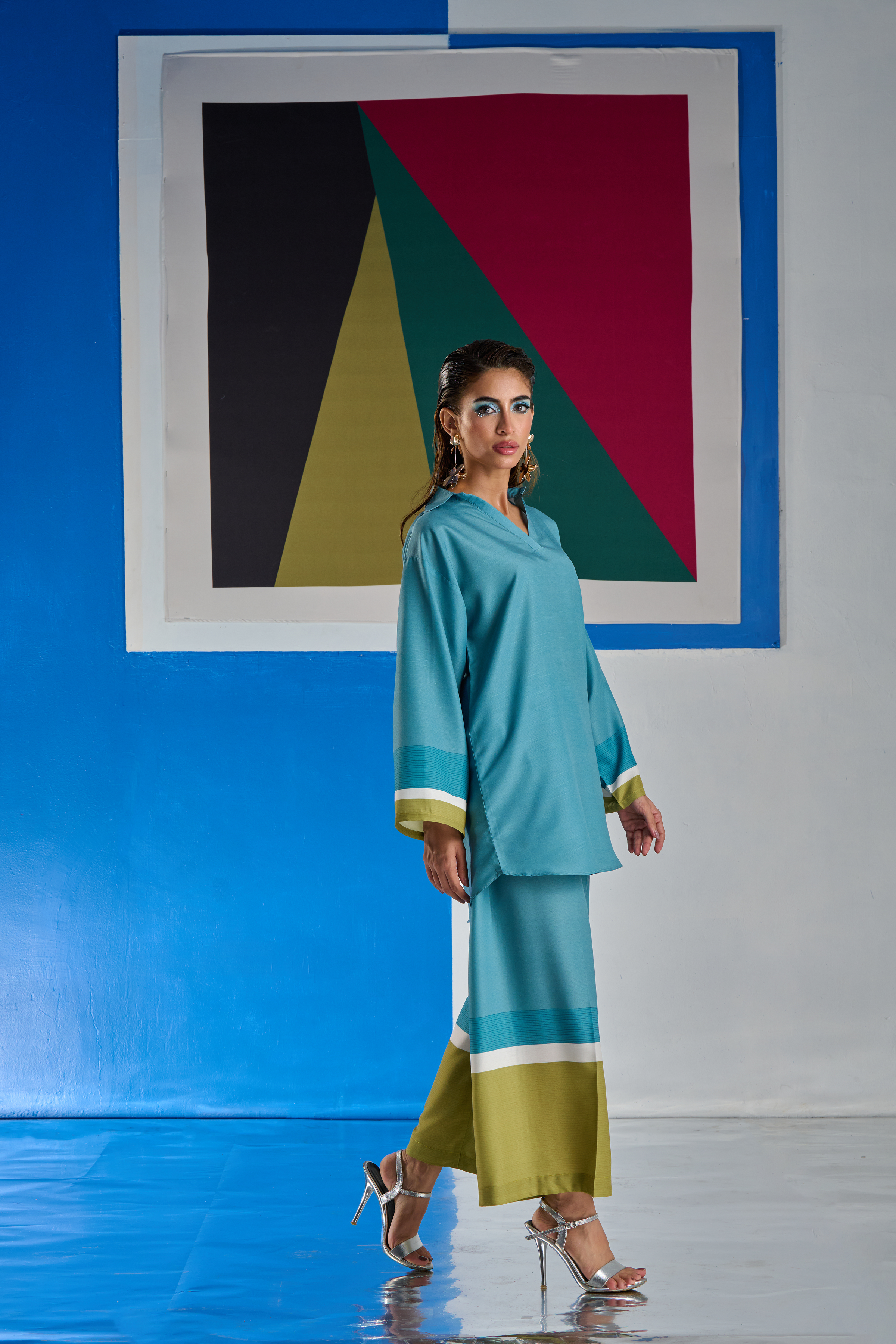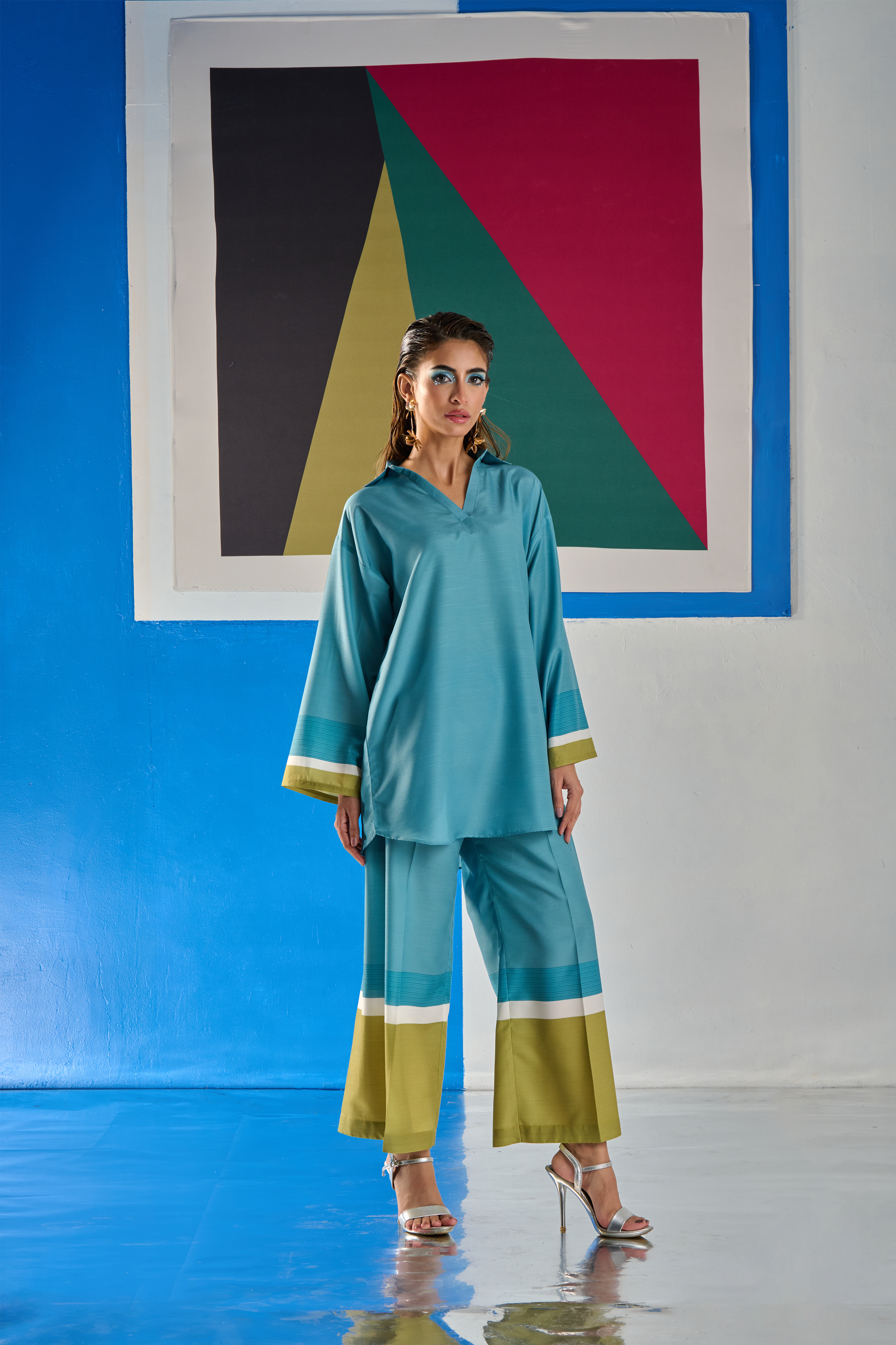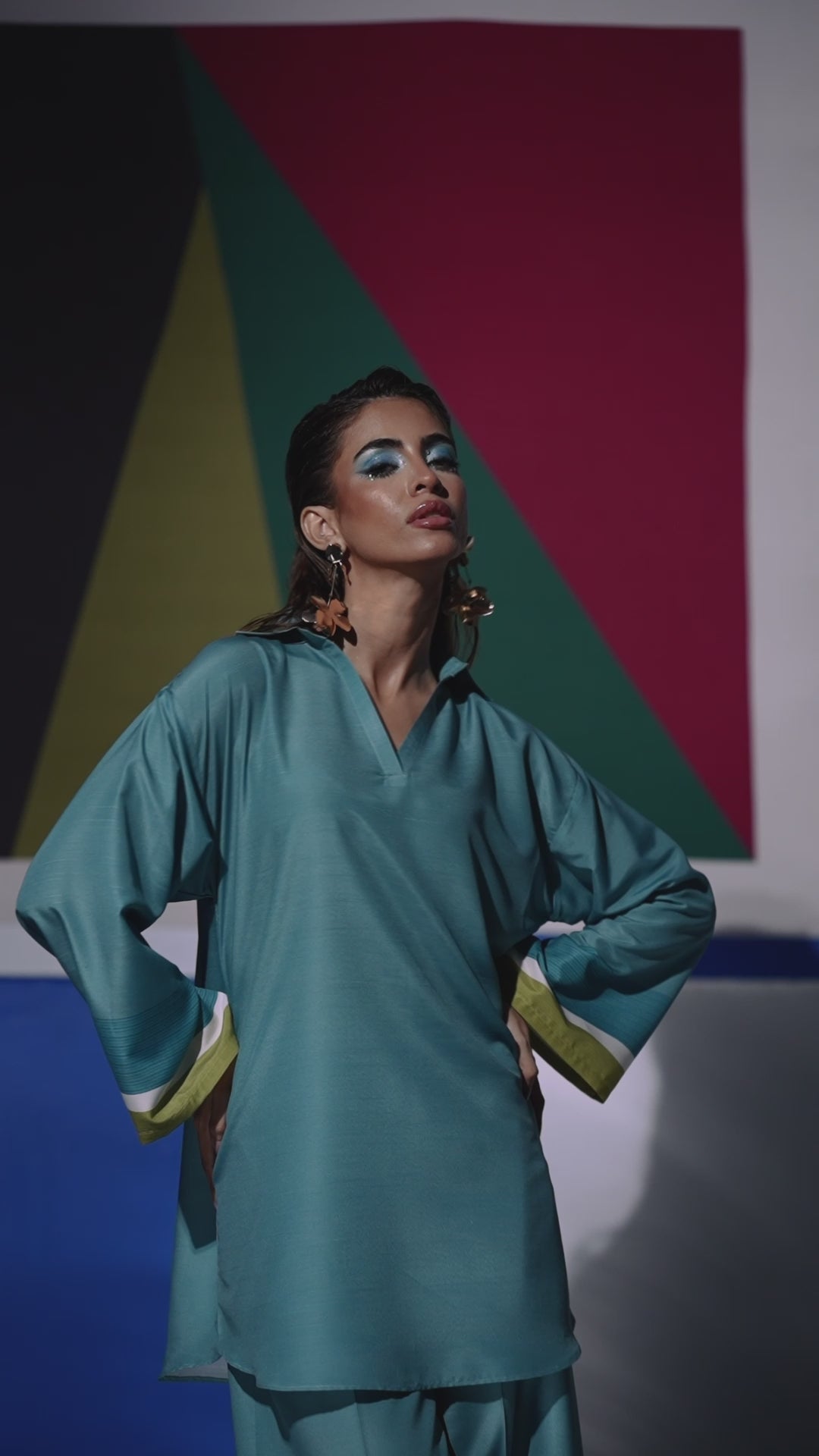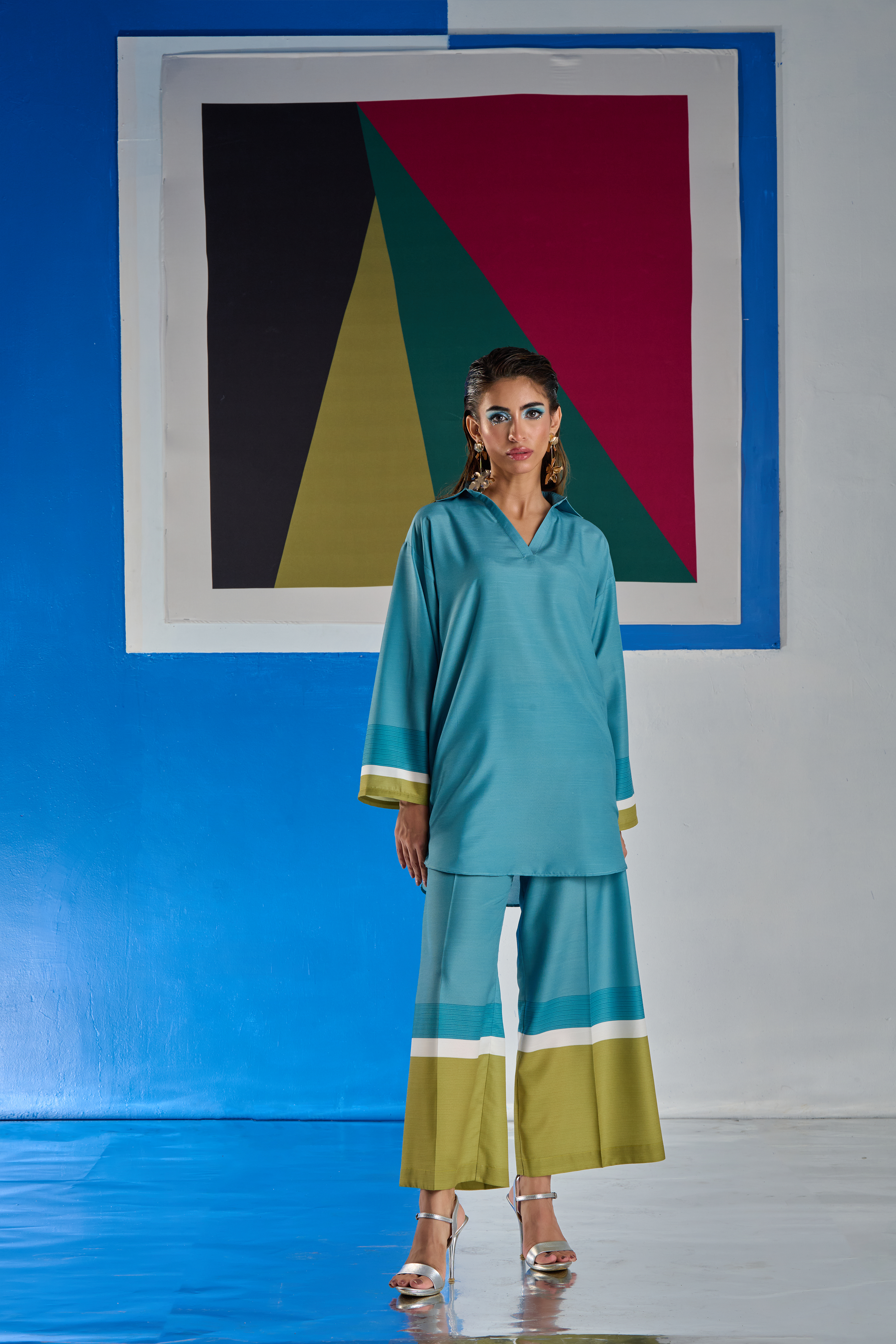 Description: Drape yourself in Teal Co-ord set– a classic outfit that speaks volumes in style