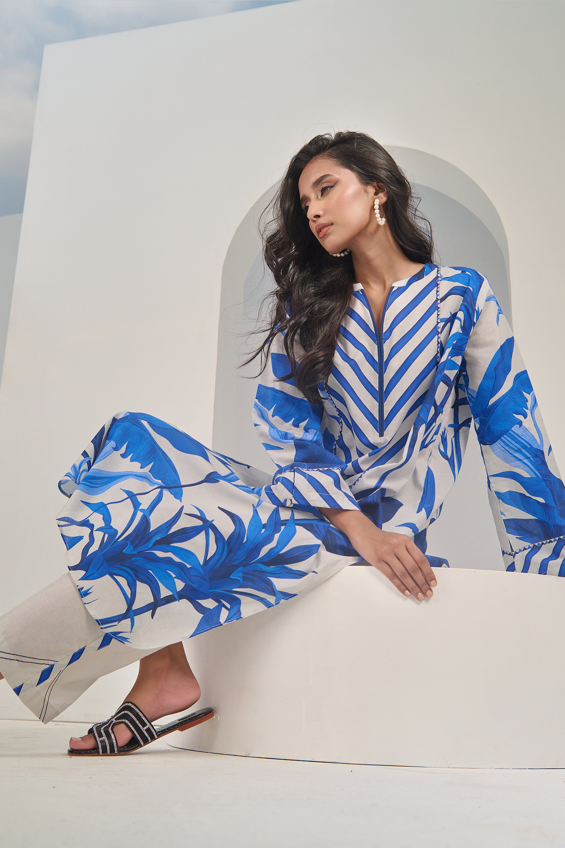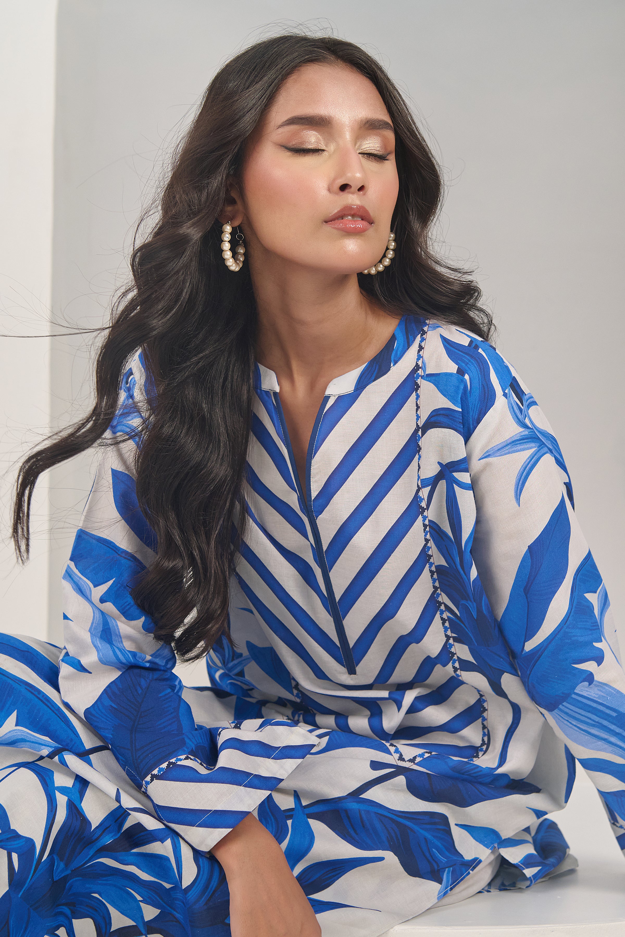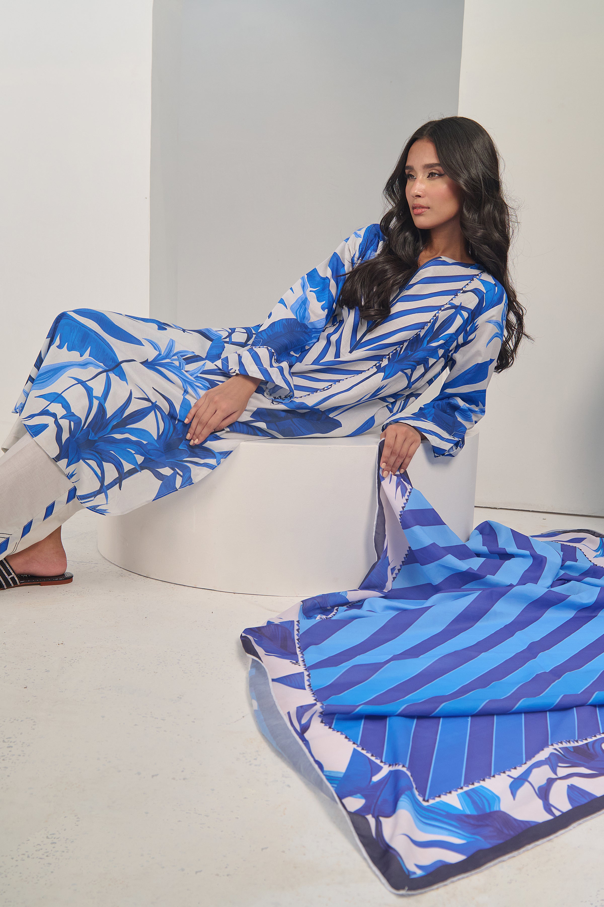 Description: Drape yourself in Blue and Ivory cord set – a classic outfit that speaks volumes in style.