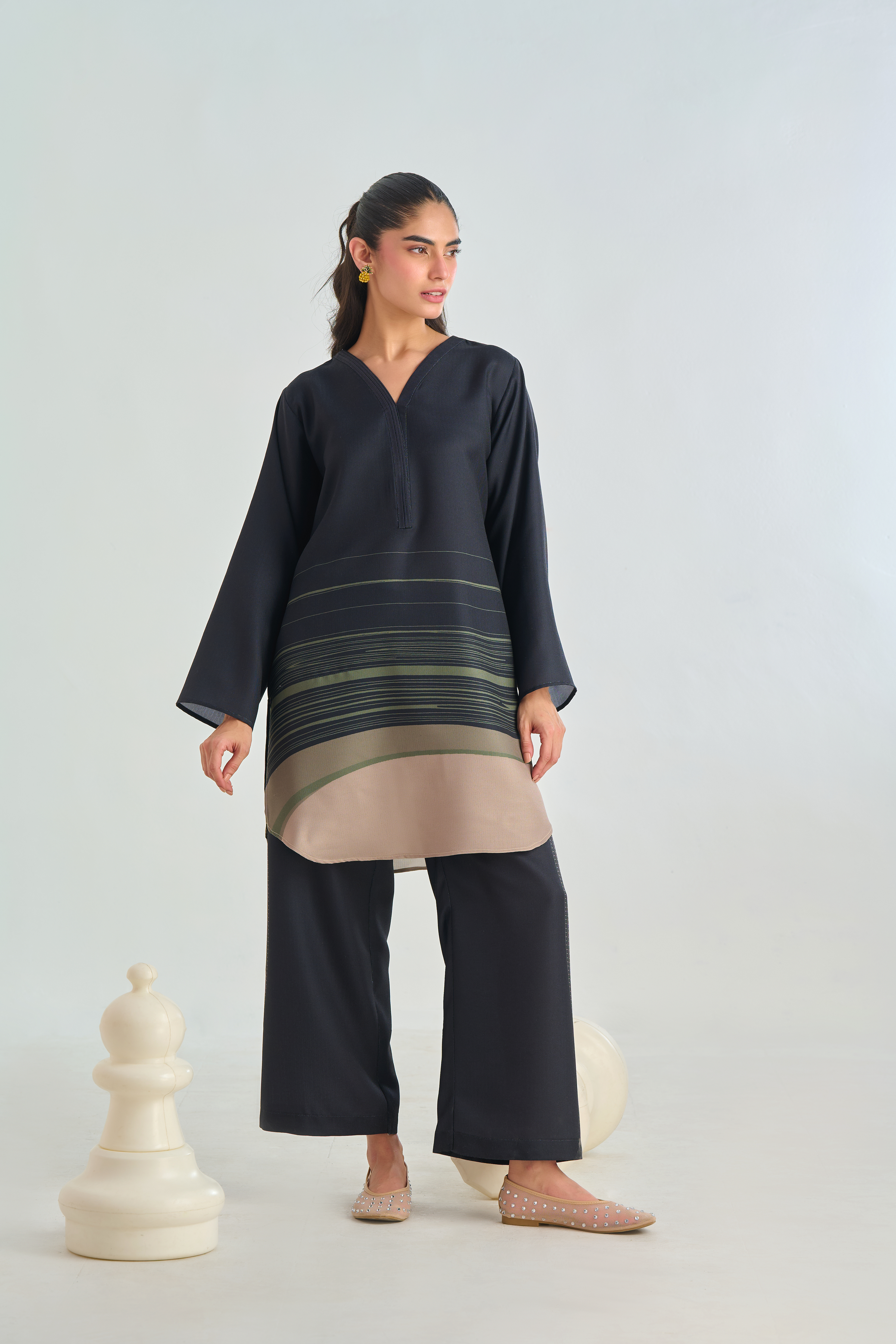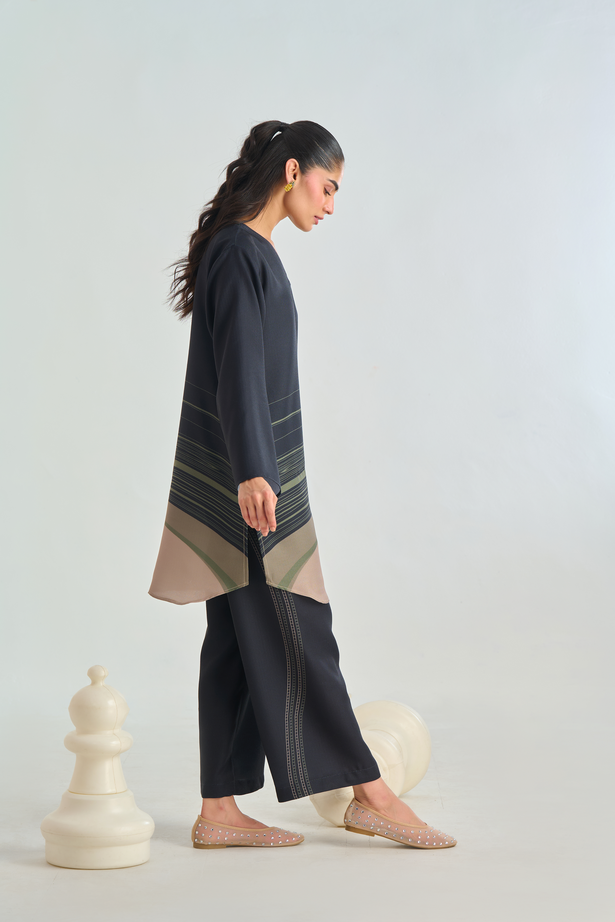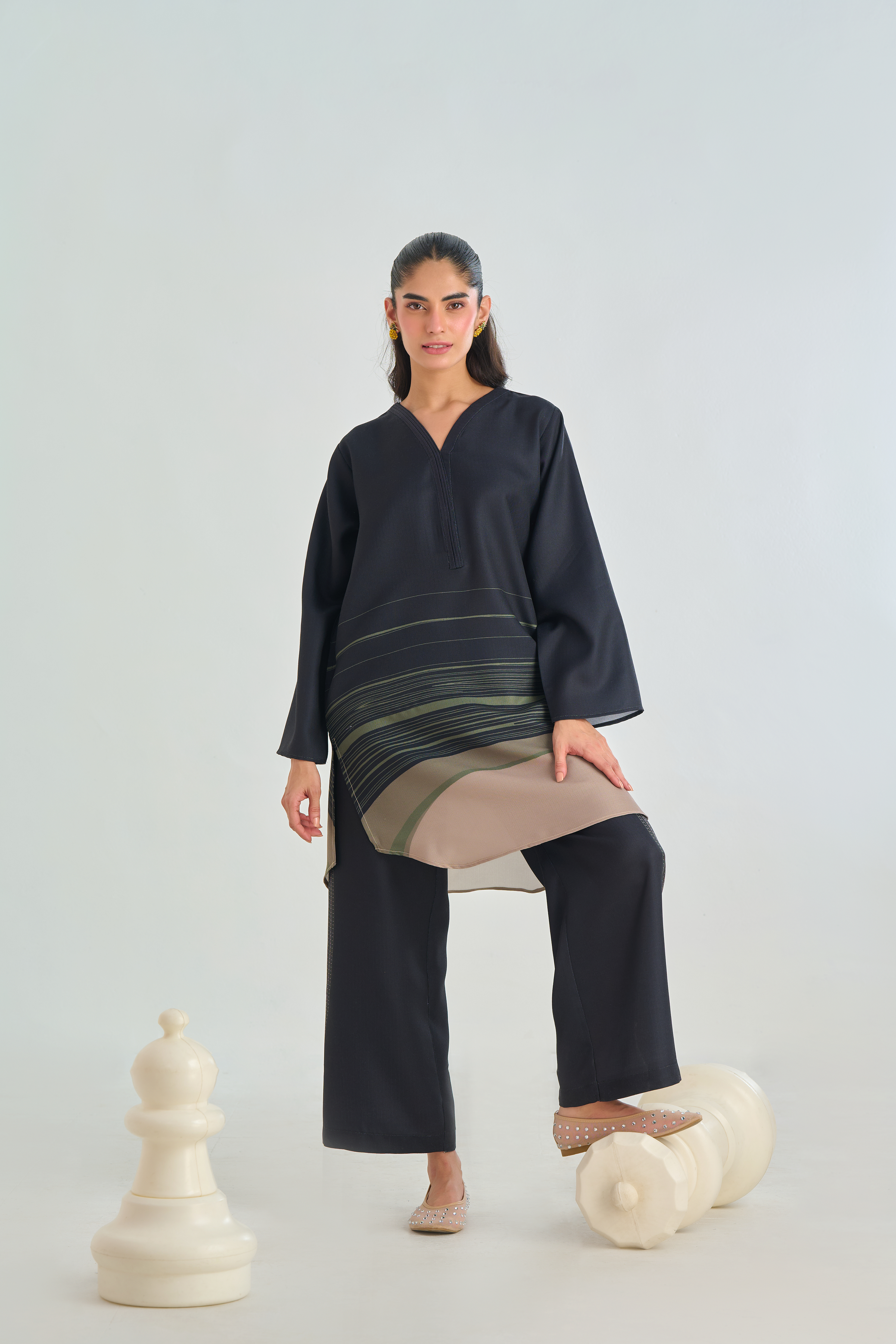 Description: Drape yourself in Black and Beige solid set– a classic outfit that speaks volumes in style
