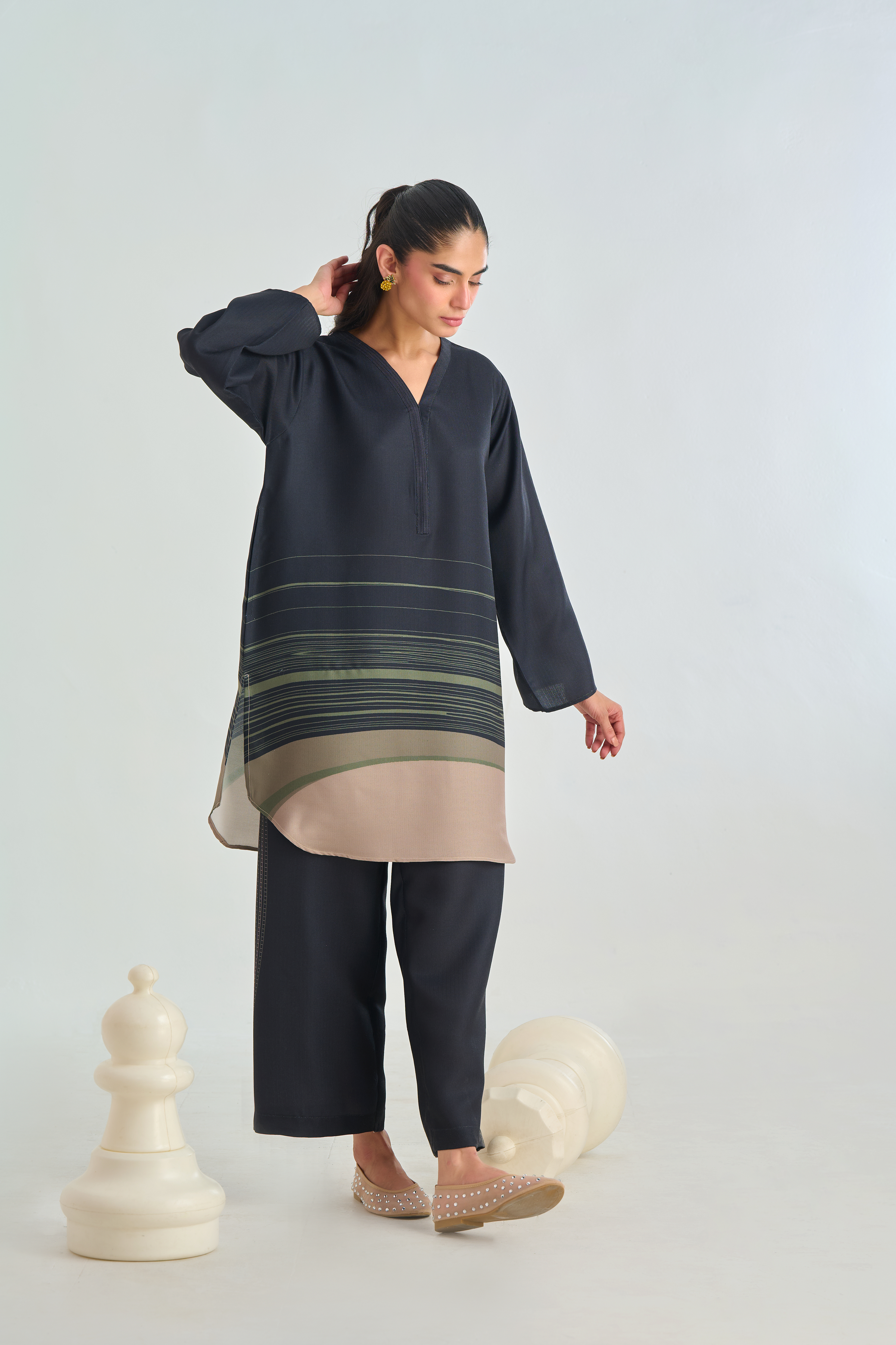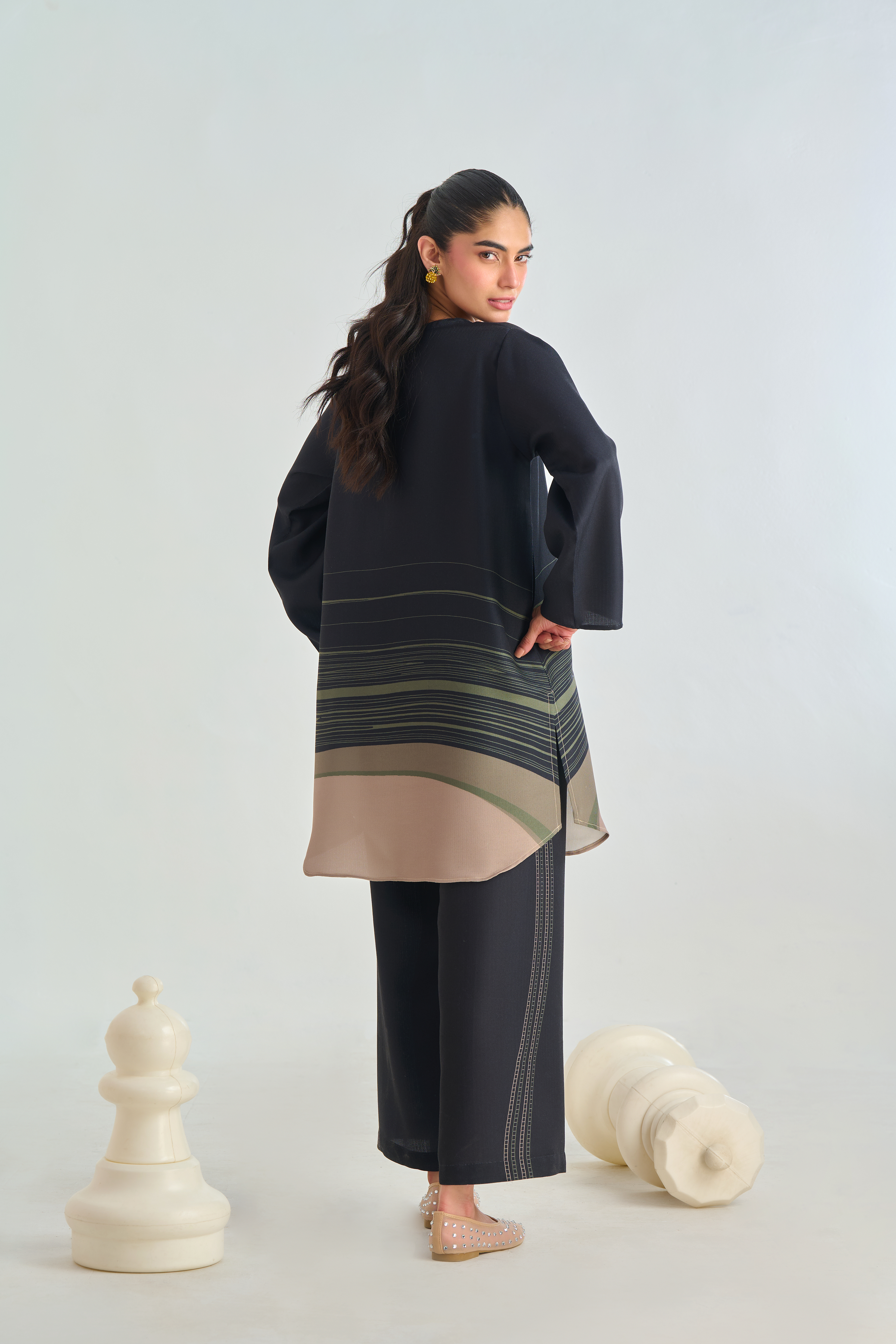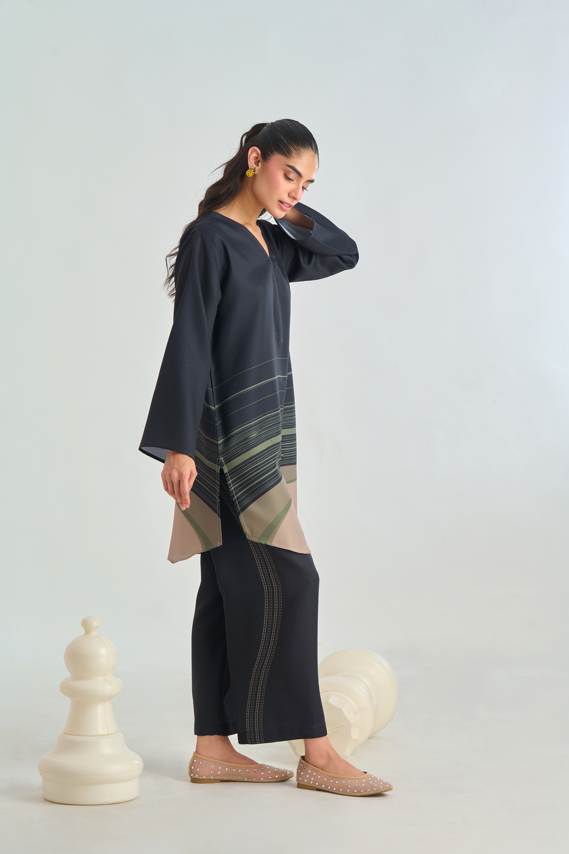 Description: Drape yourself in Black and Beige solid set– a classic outfit that speaks volumes in style