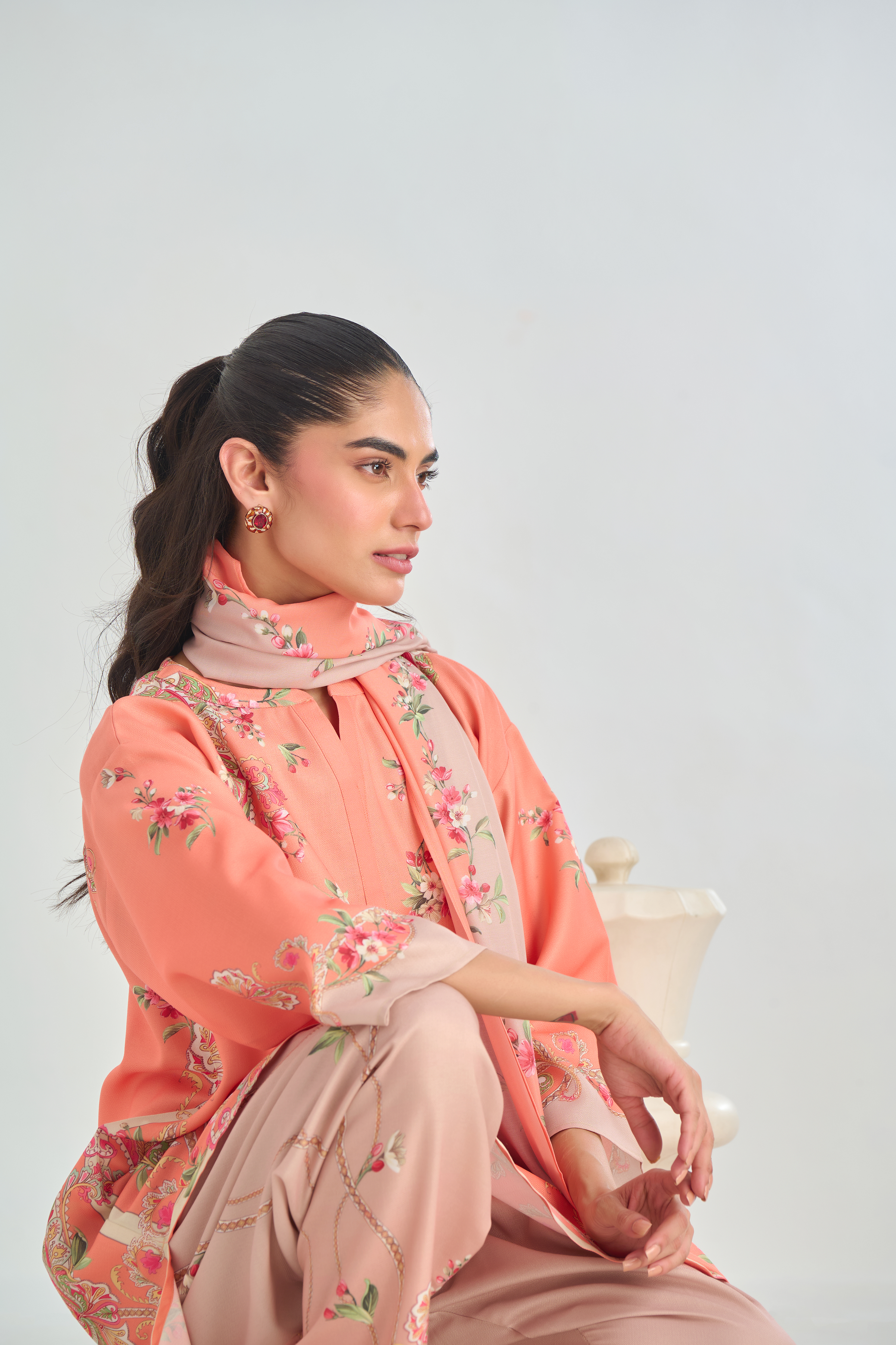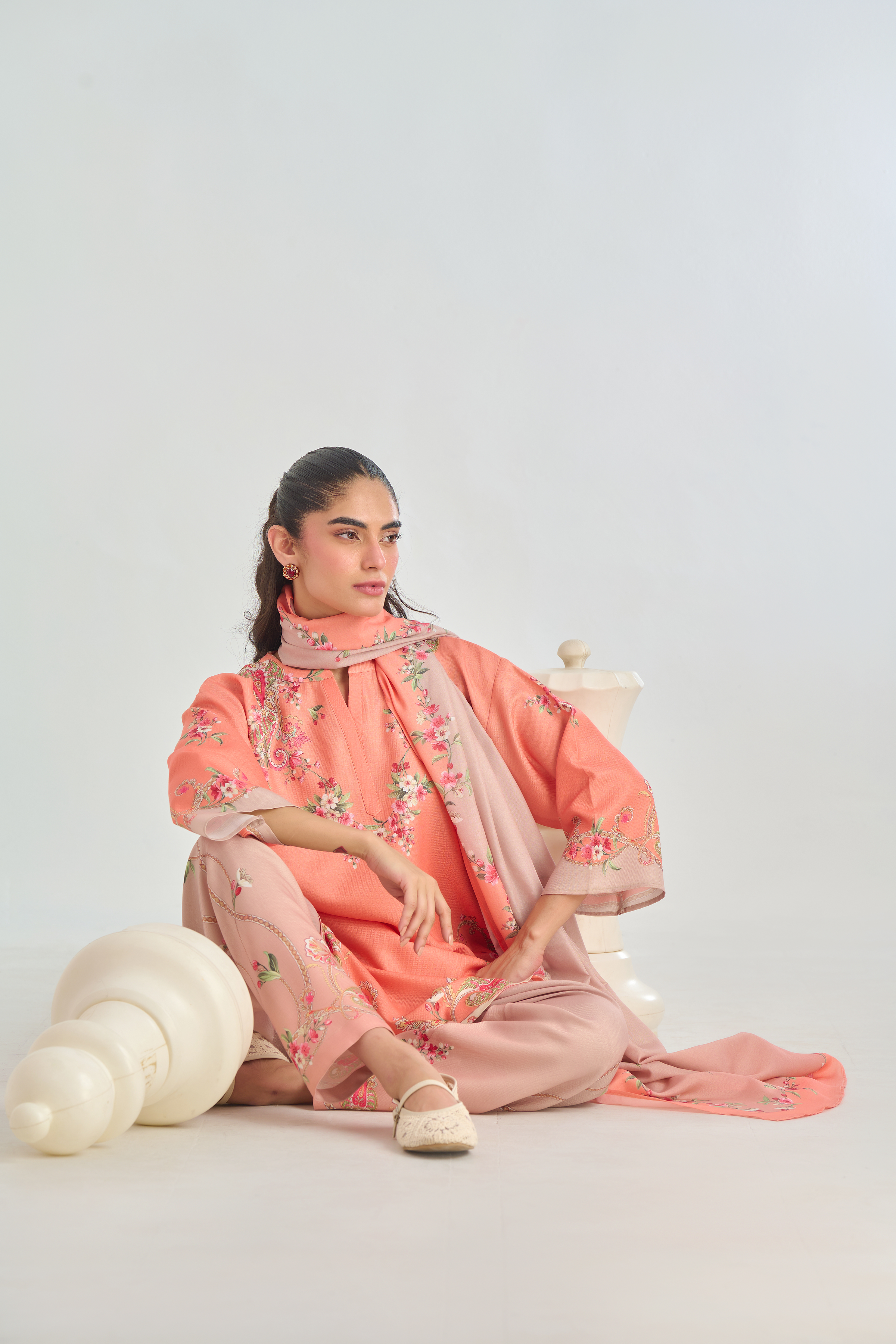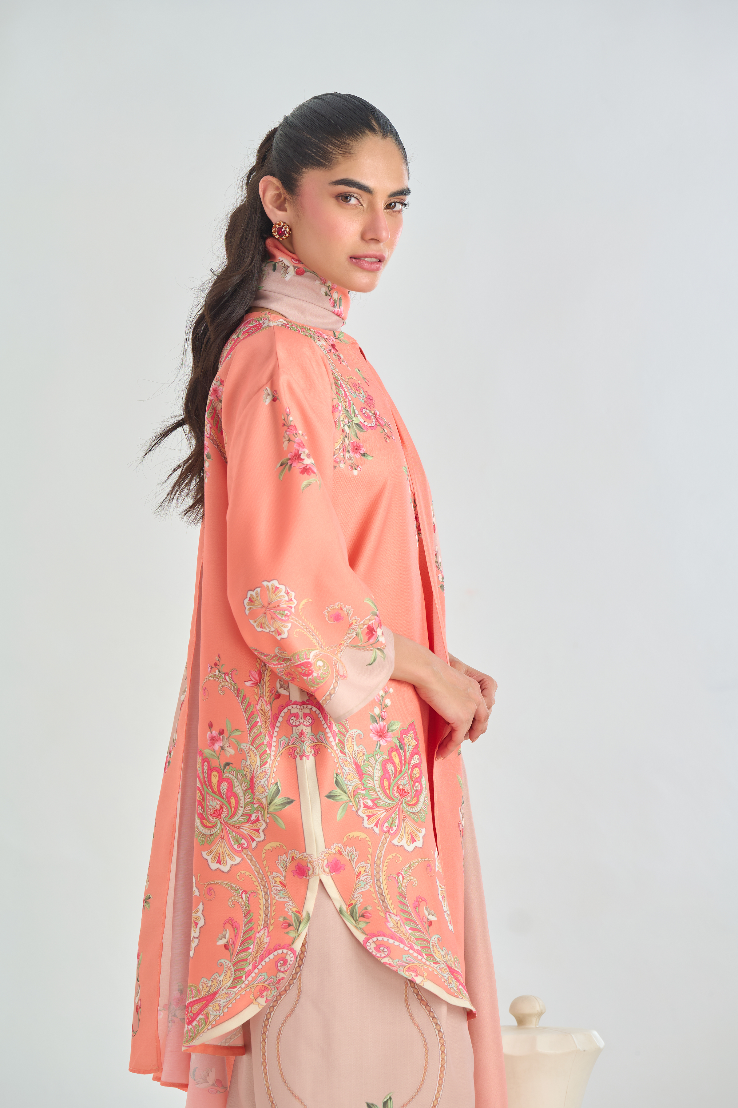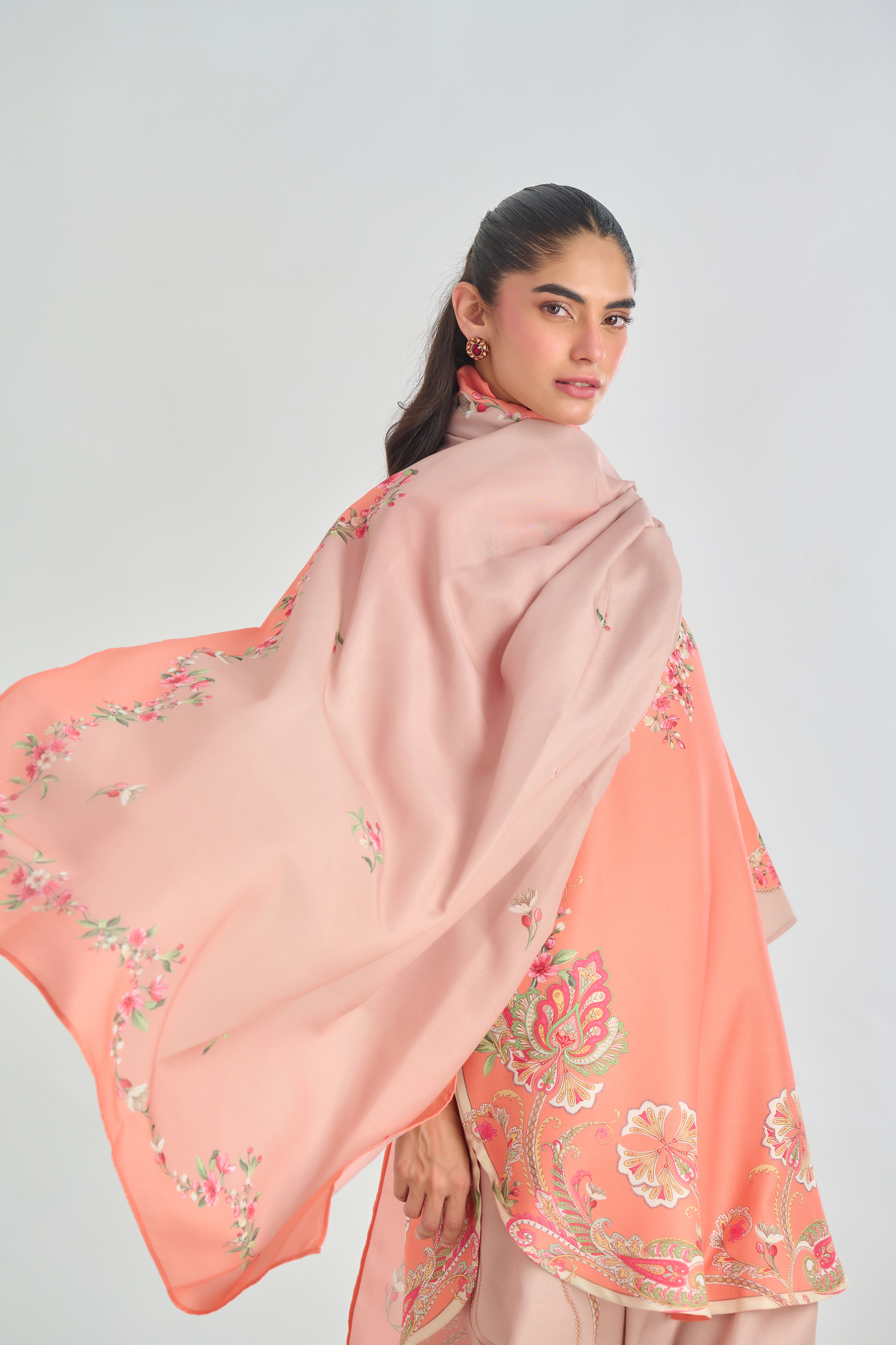 Description: Infuse classic charm with a modern twist in this Peach cord set, featuring a traditional paisley placement print in soft shades of pink, beige, and green. The intricate motifs bring a touch of heritage elegance, while the vibrant yet subtle colors add warmth and character. Crafted for both comfort and style.